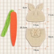 【セット内容】3点セット、ベージュ ニット ウサギ帽子&ズボン。ウエスト:約28cm~約40cm。頭囲:約24cm~約34cm。年齢対象:0ヵ月~4ヵ月に適しています。