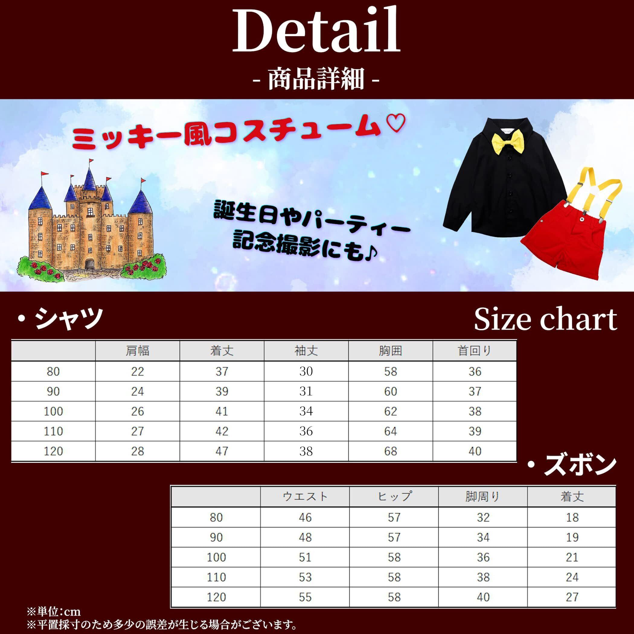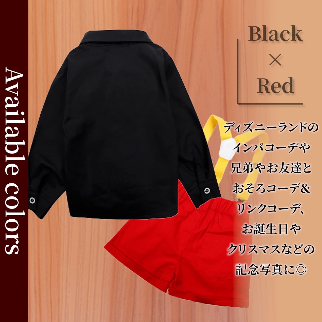 【4点セット】大人気のミッキー風コスチュームシャツ、ズボン、蝶ネクタイ、サスペンダーの超かわいい4点セットです◎
