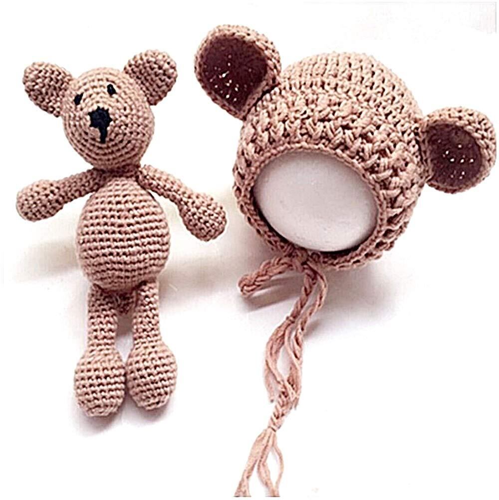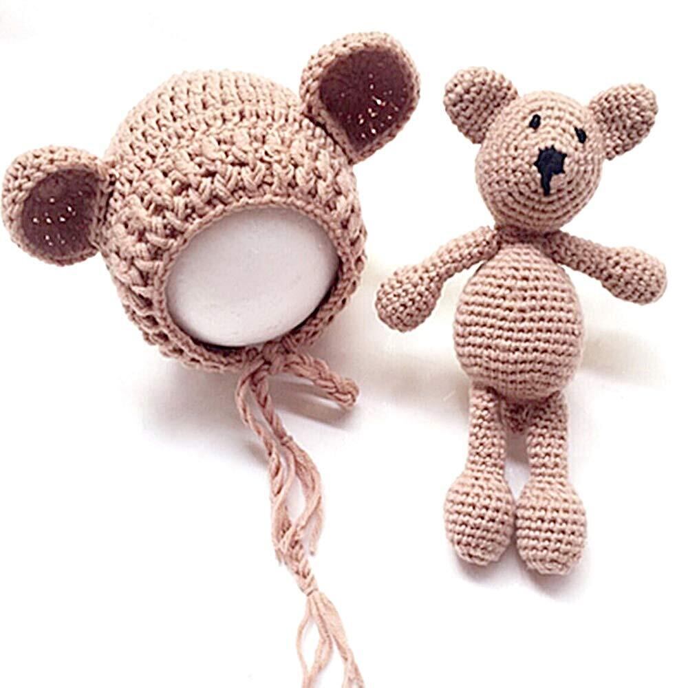[TradeWind] 赤ちゃん 新生児 ニューボーンフォト 寝相アート コスチューム 撮影 ニット帽 ぬいぐるみ 着ぐるみ 出産祝い 初孫祝い 2点セット (0-3 ブラウン)