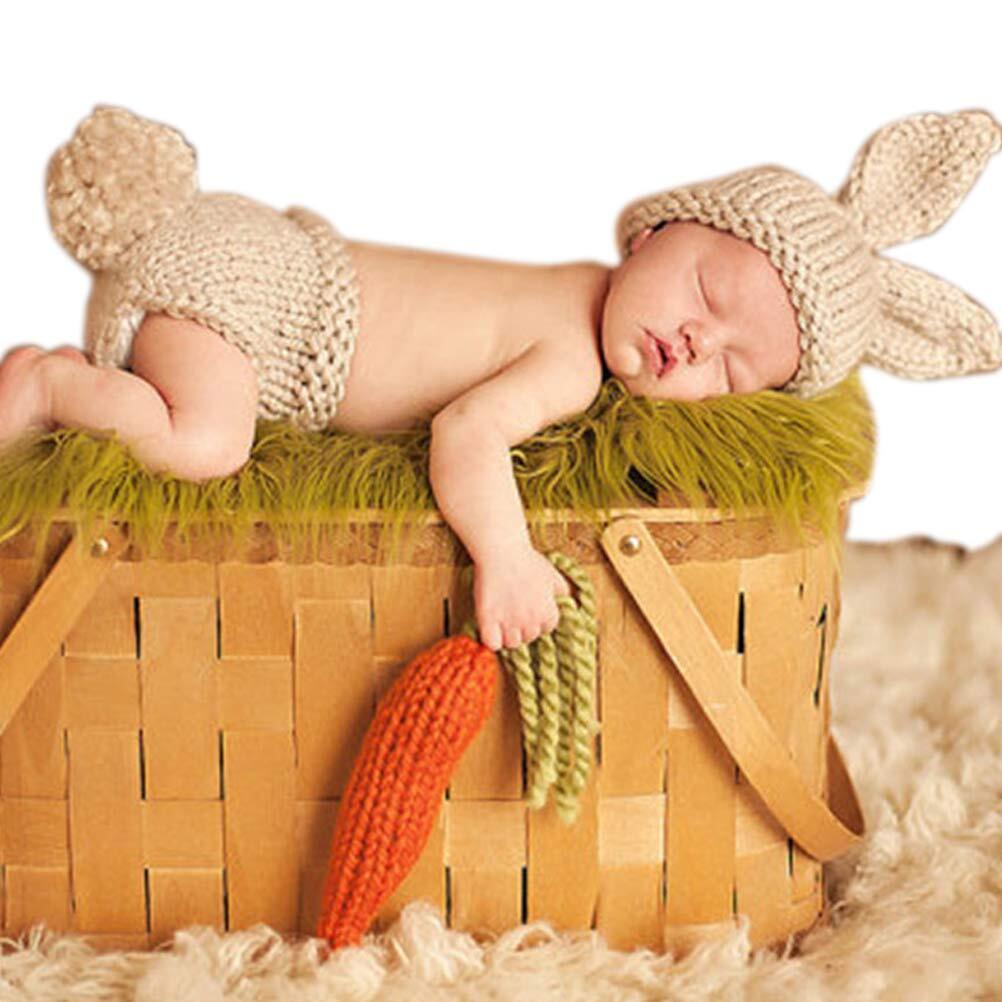 【特価セール】[BIUBIONG] ベビー 撮影服 3点セット 新生児 写真服 毛糸 寝相アート 可愛い うさぎコスチューム 赤ちゃん 誕生日記念 出産祝い
