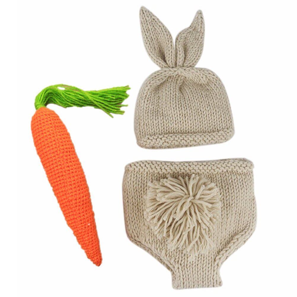 [BIUBIONG] ベビー 撮影服 3点セット 新生児 写真服 毛糸 寝相アート 可愛い うさぎコスチューム 赤ちゃん 誕生日記念 出産祝い