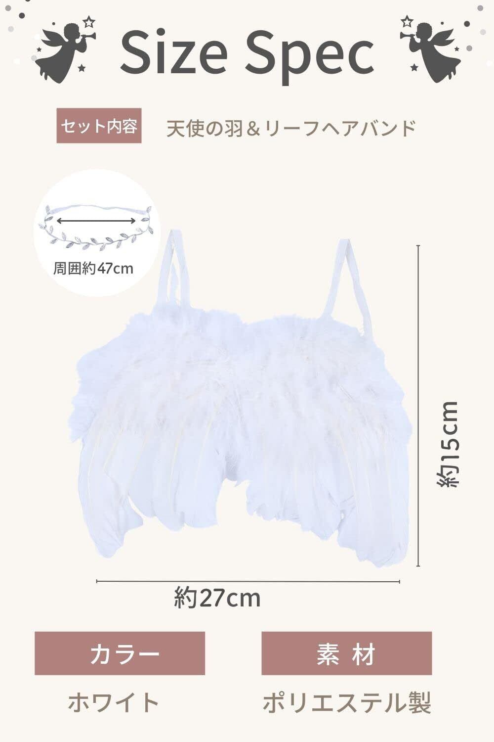 【 男女兼用でお使いいただけます〇 】 本製品は、ホワイトのシンプルな天使の羽とリーフのヘアバンドのセットになっております。男の子・女の子どちらでもお使いいただけます。出産祝いや誕生日などのプレゼントとしても喜ばれるアイテムですので、この機会にぜひお試しください 【 商品仕様 】 ●「カラー」ホワイト ●「素材」ポリエステル製 ●「セット内容」天使の羽&リーフヘアバンド