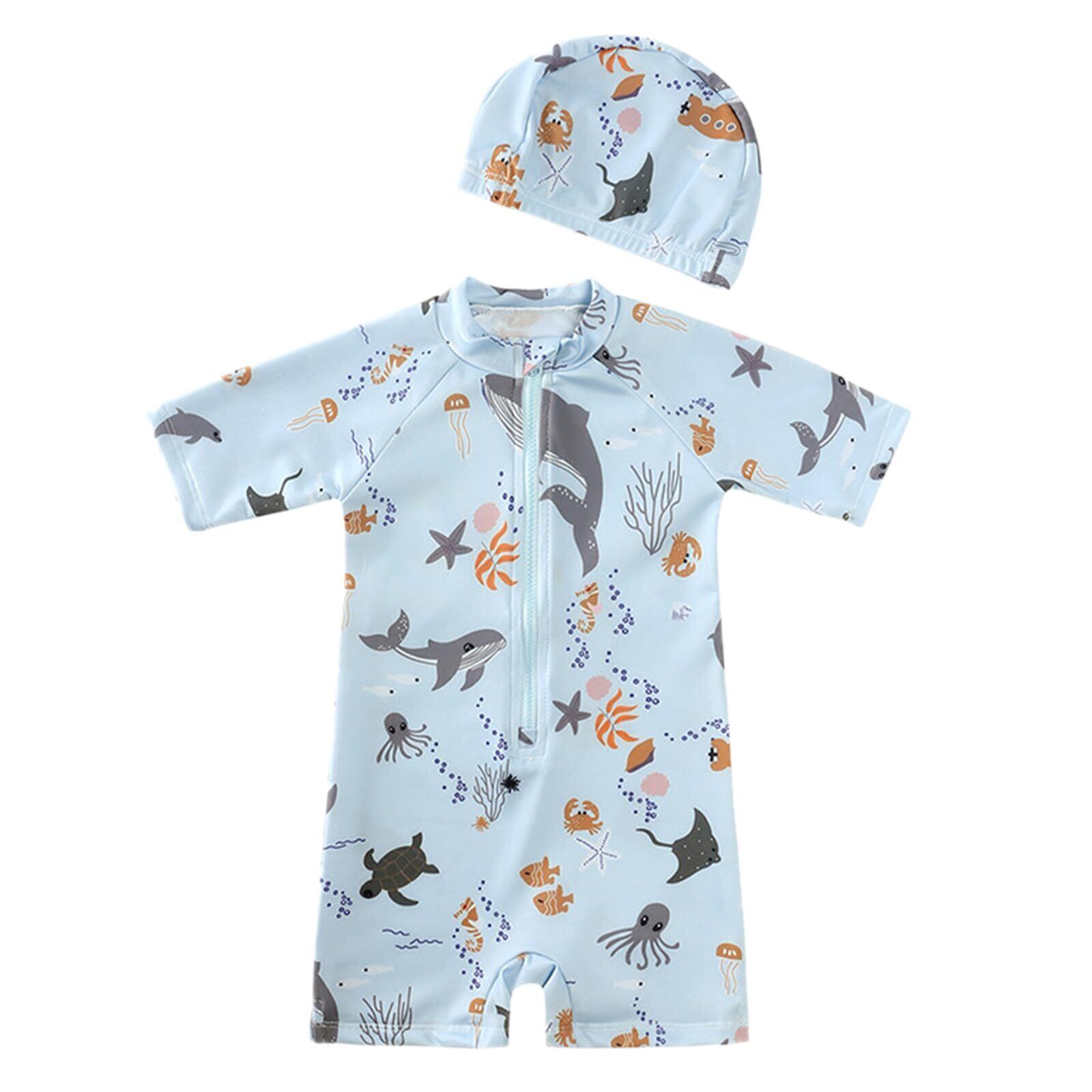 [ミラシック] ベビー水着 ロンパース 帽子付き 80cm 男の子 女の子 赤ちゃん用 半袖 スイムウェア かわいい UVカット 夏 プール 海 TN-SWHY-C-80