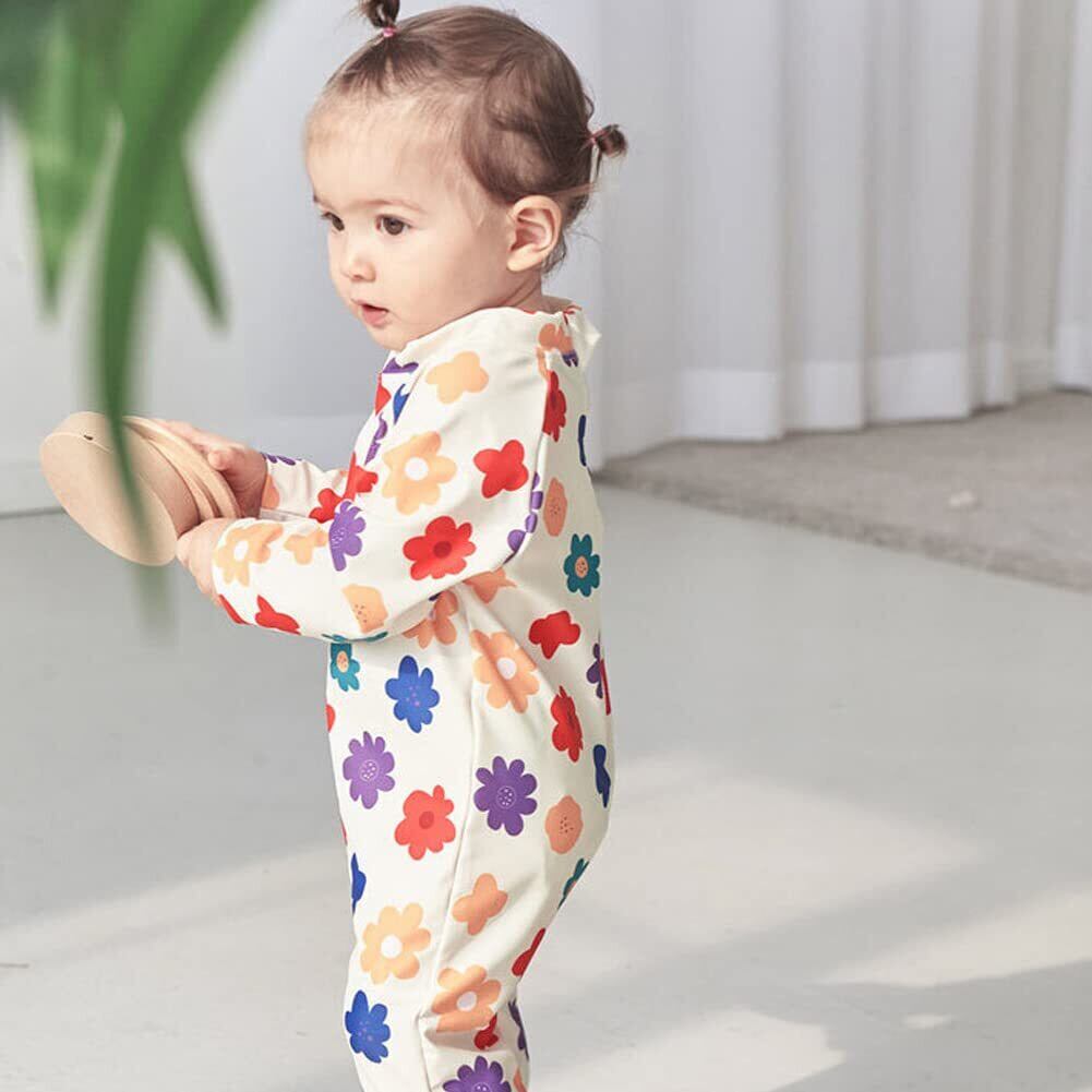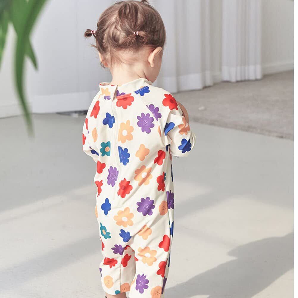 [Yolrky] ベビー 水着 女の子 ラッシュガード 子供 水着 長袖 花柄 ベビースイミング オールインワン スイムウェア
