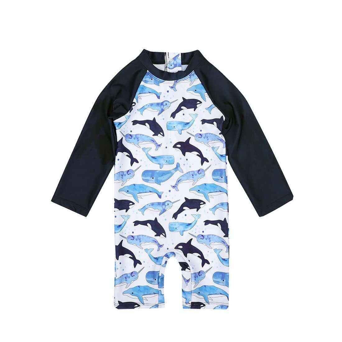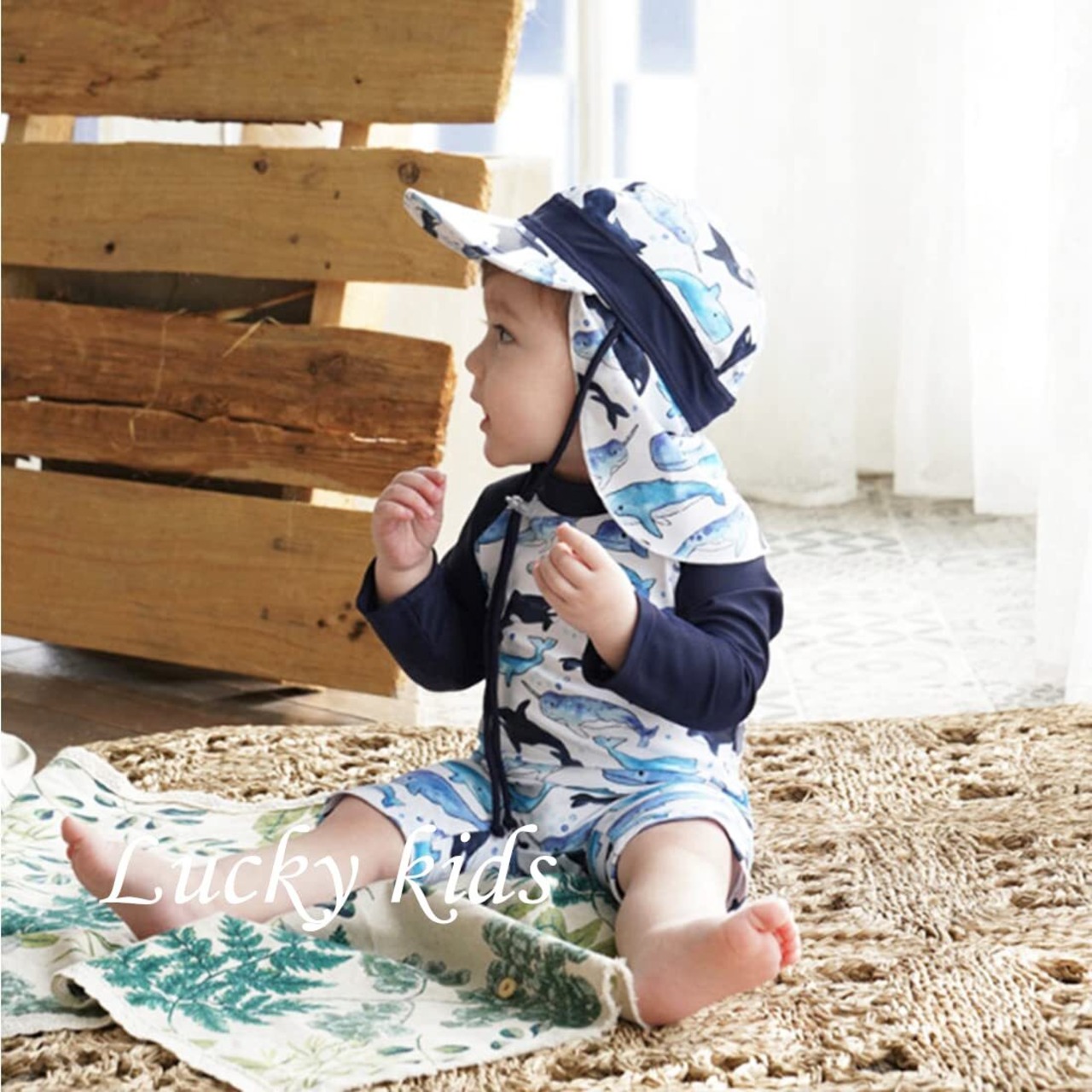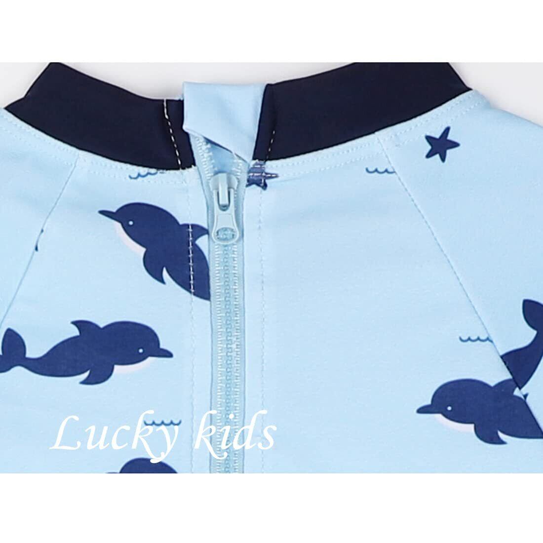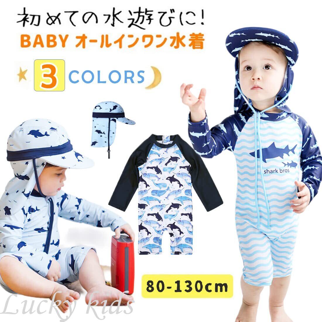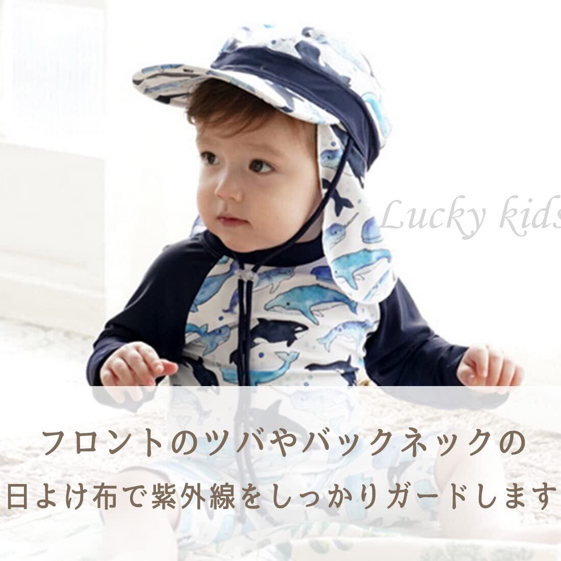 [Lucky kids] 水着 男の子 ベビー 子供 ラッシュガード サメ 子供 帽子付き UVカット スイムウェア UPF50+ 日焼け防止 プール 水遊び 海水浴 ロンパース
