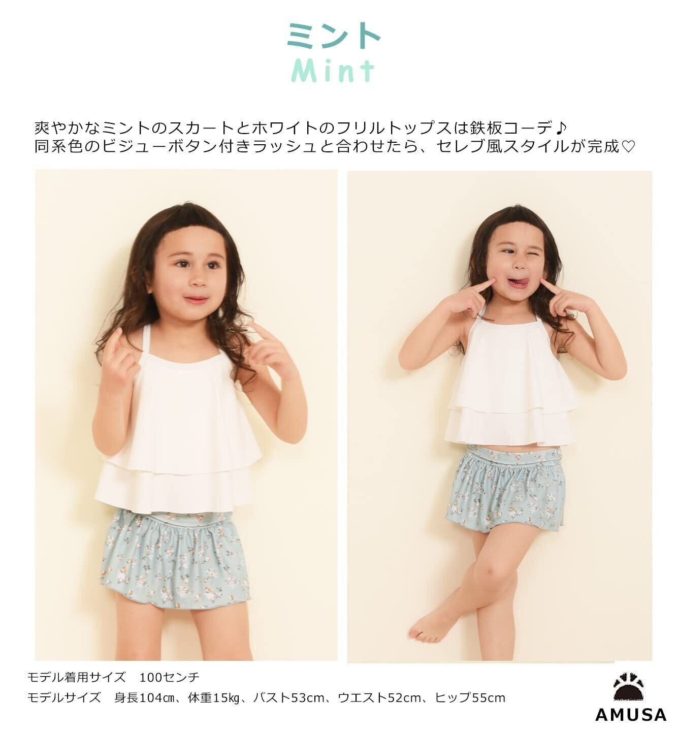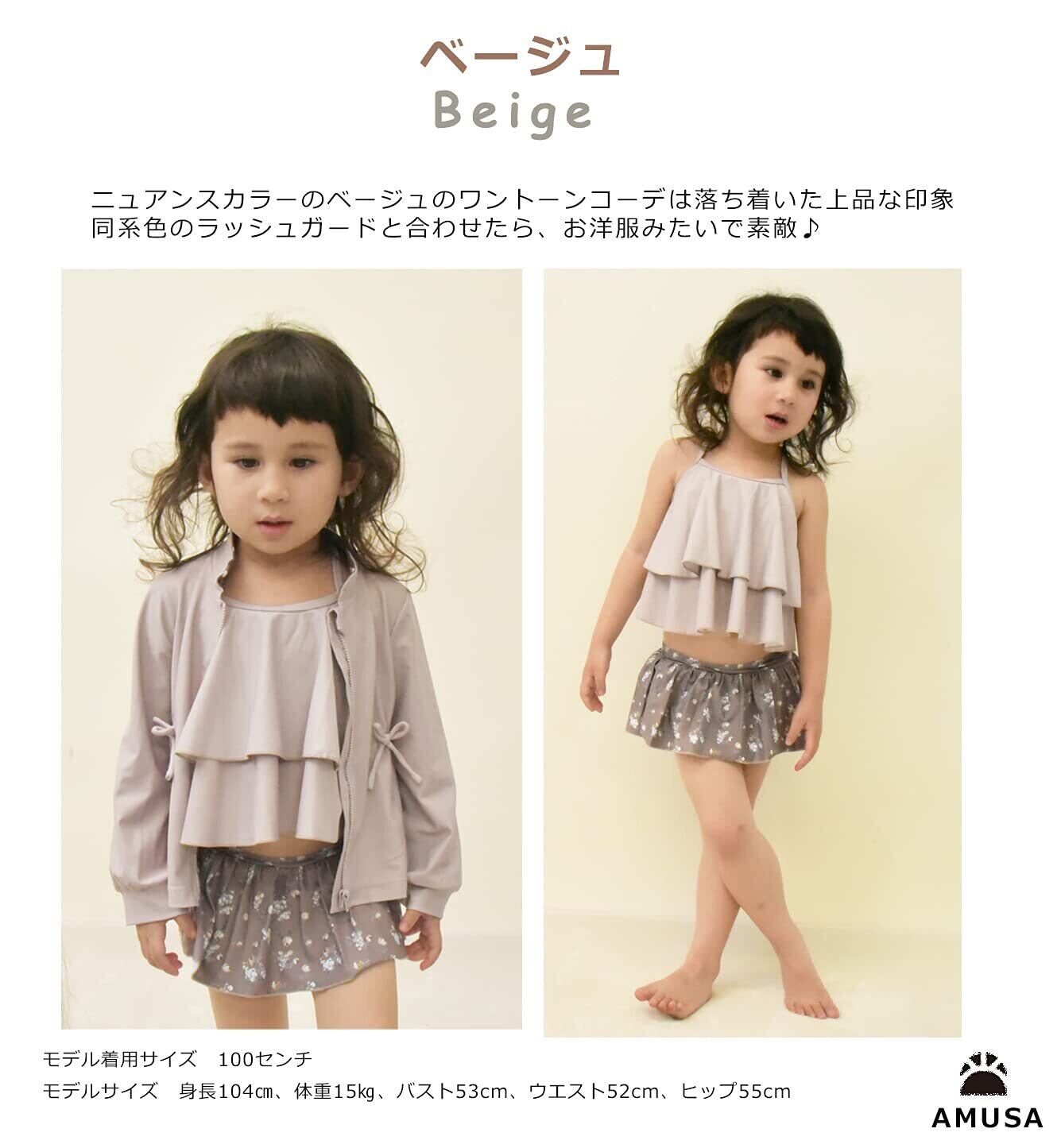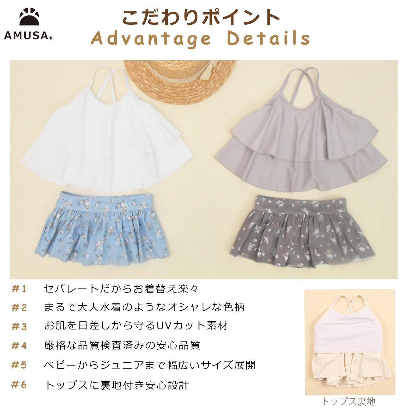 [AMUSA] ビンテージフラワー柄2段フリルセパレート水着 キッズ ベビー 2点セット 赤ちゃん 子供 女の子 ak1103