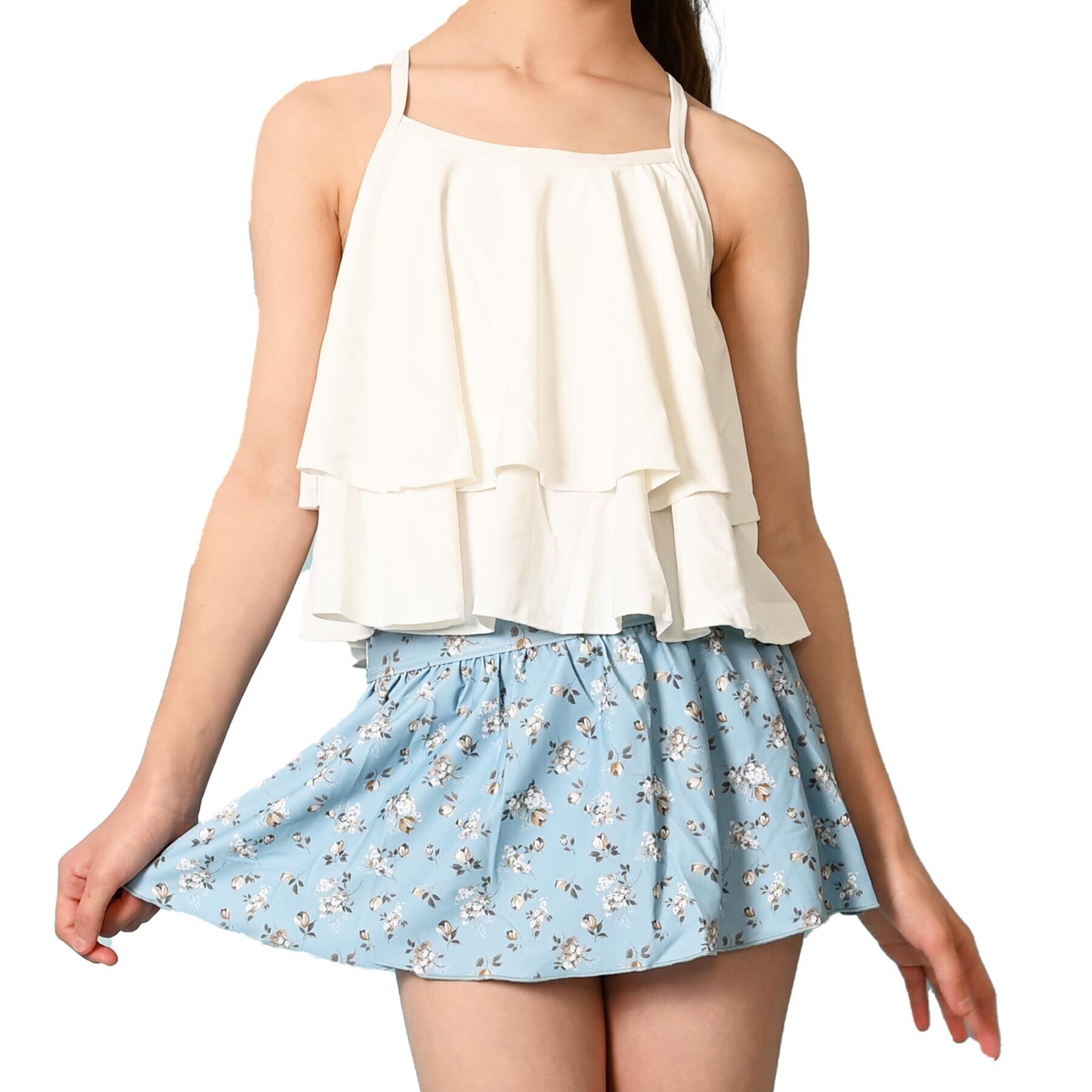 ビンテージフラワー柄2段フリルセパレート水着