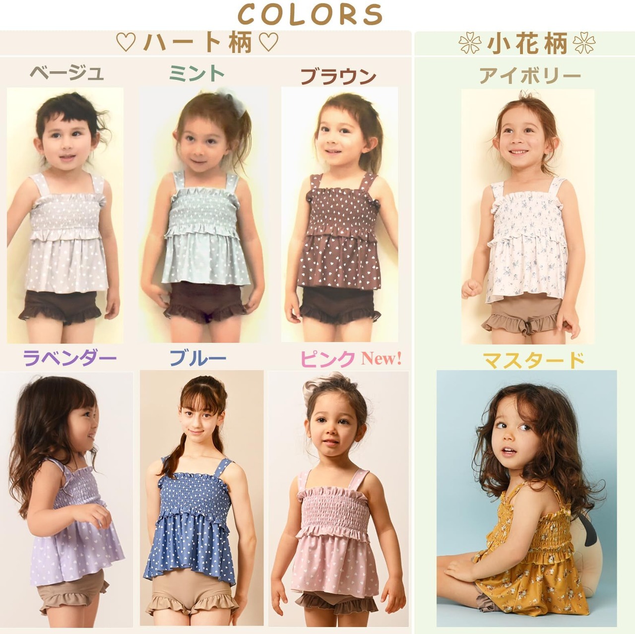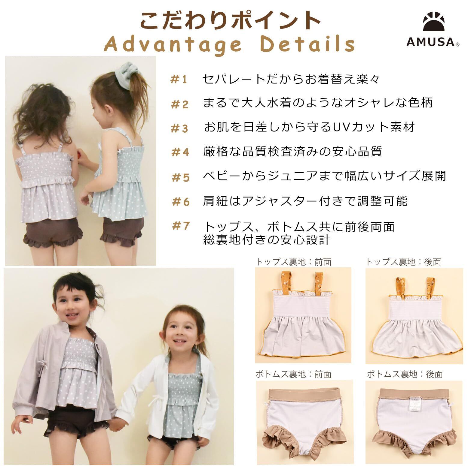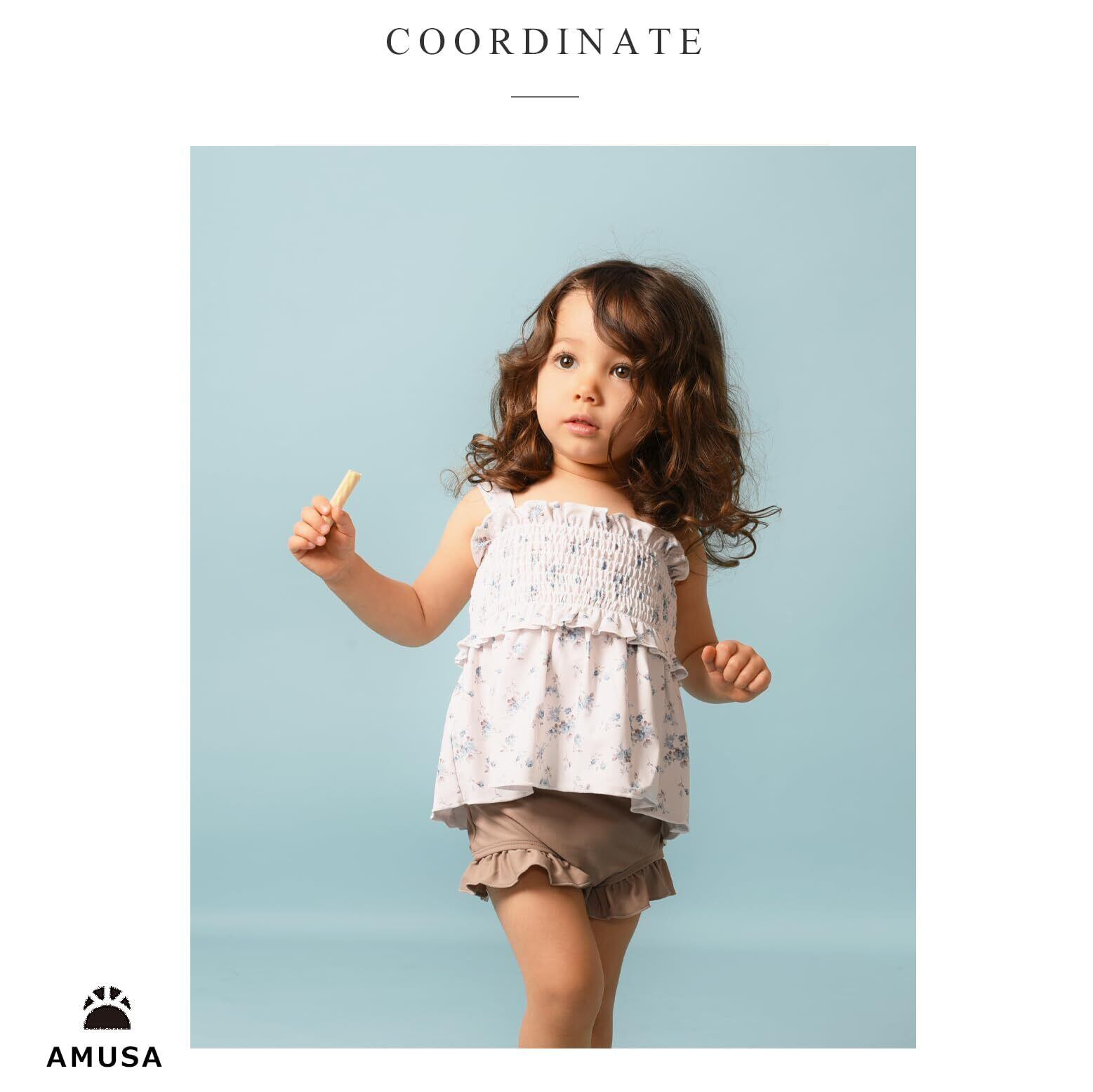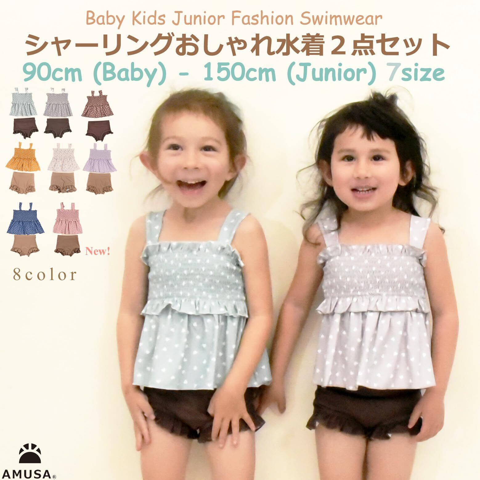【新着商品】[AMUSA] ハート柄シャーリングフリル水着 セパレート キッズ ベビー 2点セット 赤ちゃん 子供 ak1102