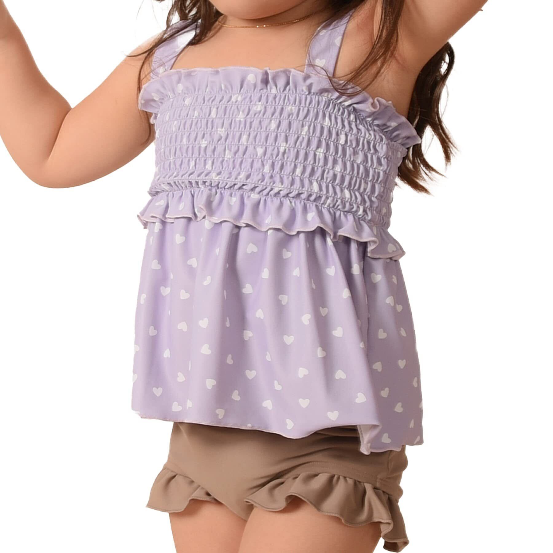 [AMUSA] ハート柄シャーリングフリル水着 セパレート キッズ ベビー 2点セット 赤ちゃん 子供 ak1102