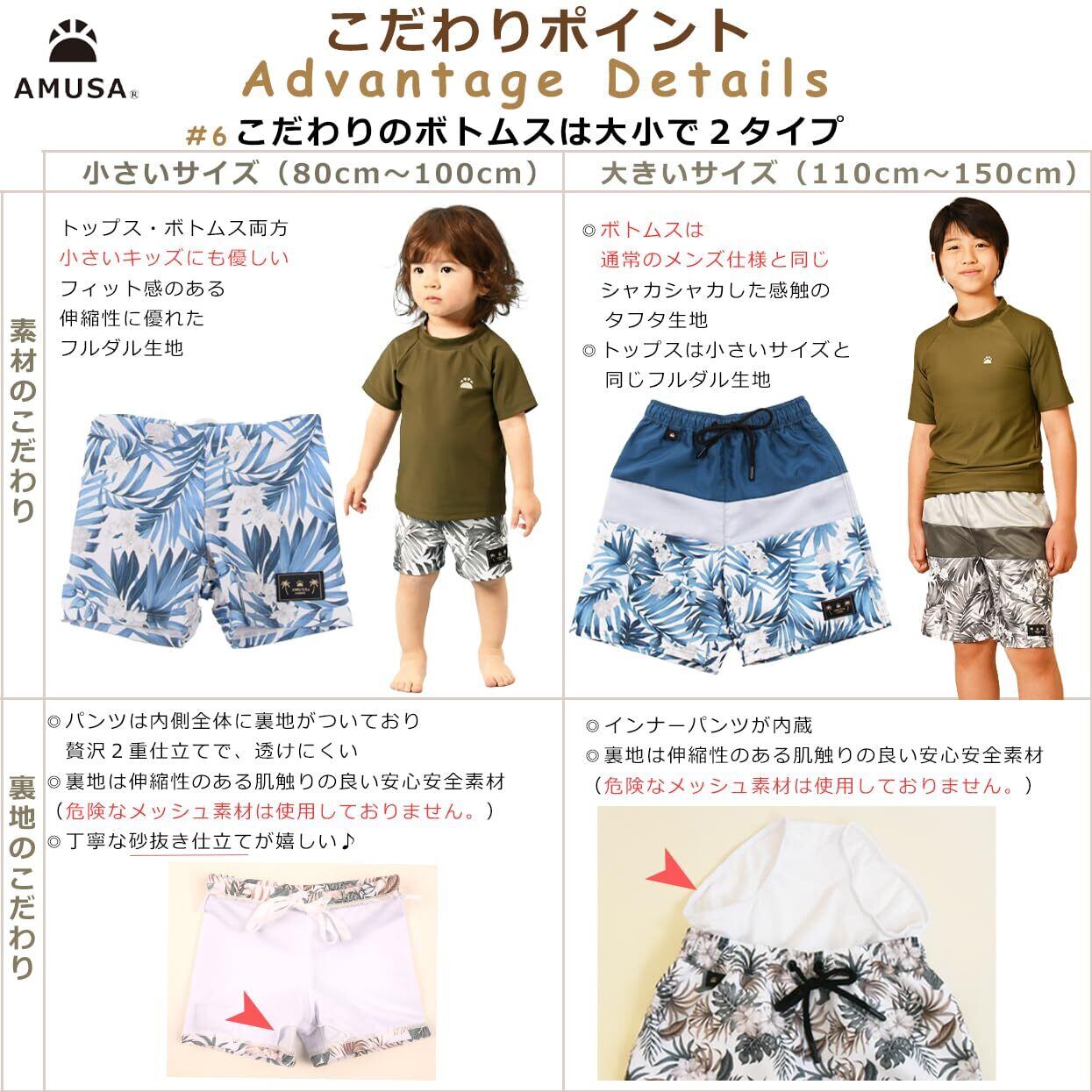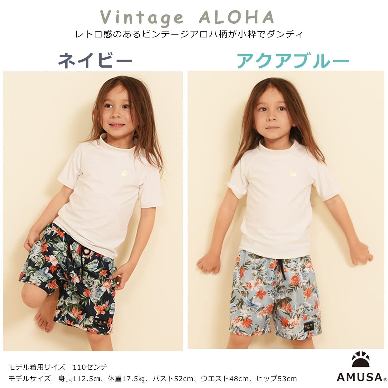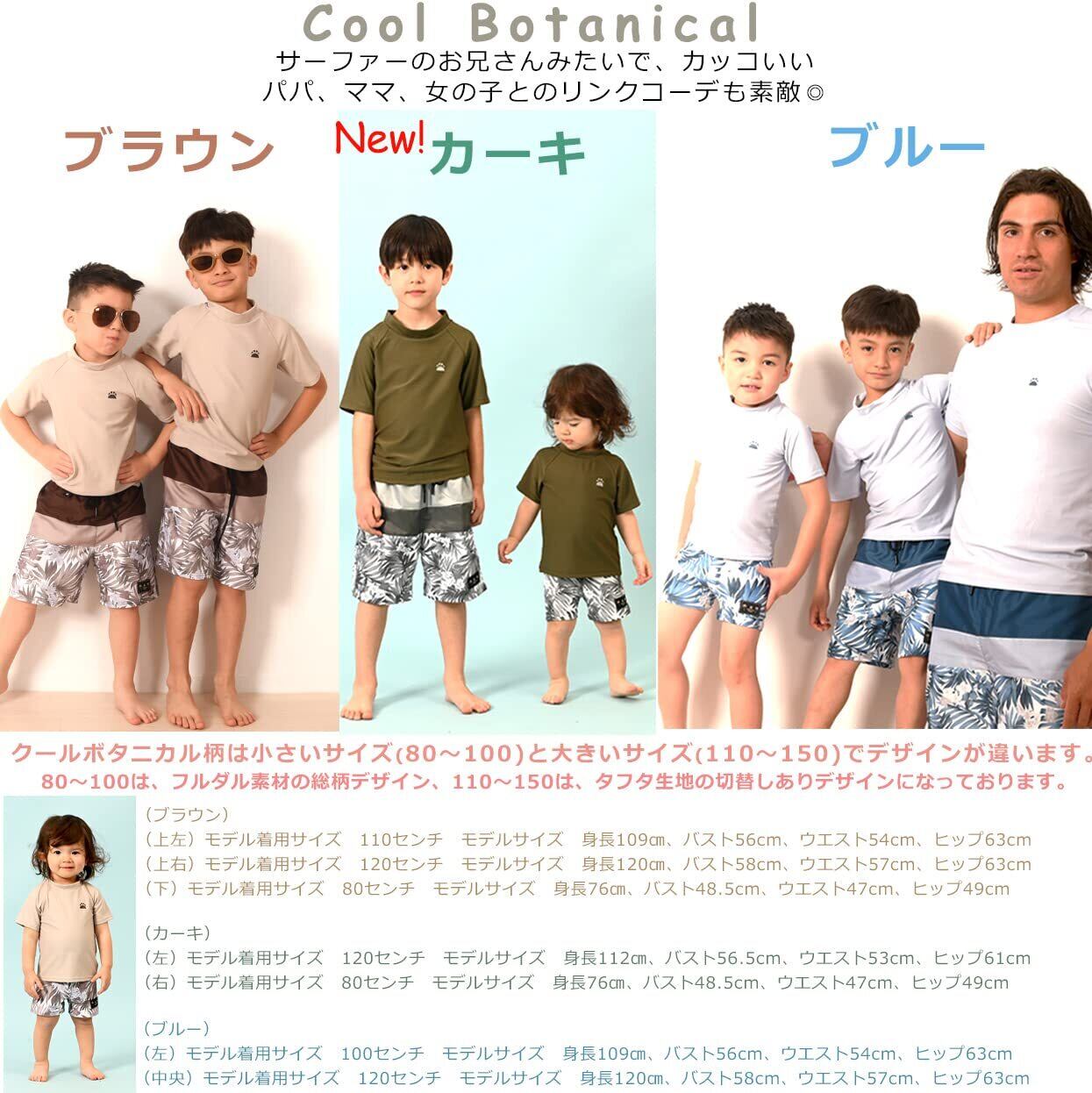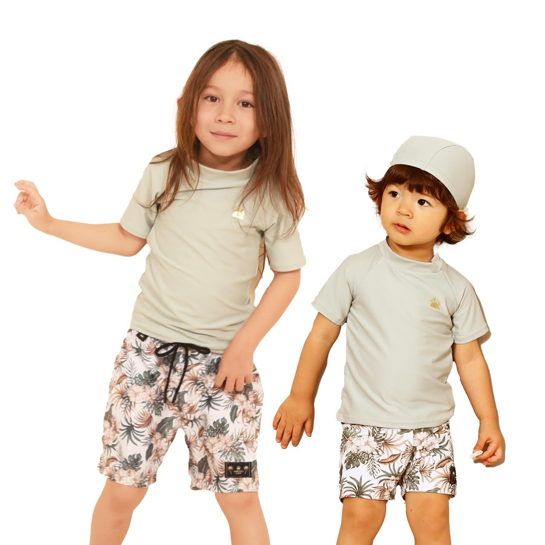 [AMUSA] ak1131 半袖ラッシュガード付ボタニカル柄水着2点セット ベビーキッズ 男児 男の子 サーフ 赤ちゃん 子供