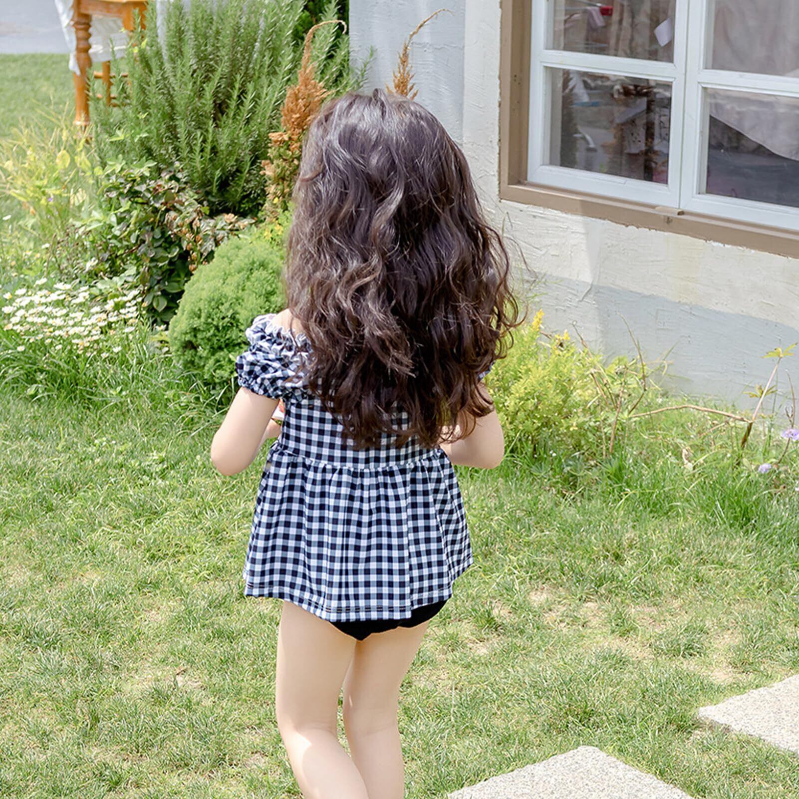 【新着商品】[Formemory] キッズ 水着 女の子 セパレート 半袖 水着 子供 オフショルダートップス 子供用水着 幼児 スイムウェア 上下セット スイムキャップ 3点セット 紫外線対策 日焼け止め 幼稚園 保育園用