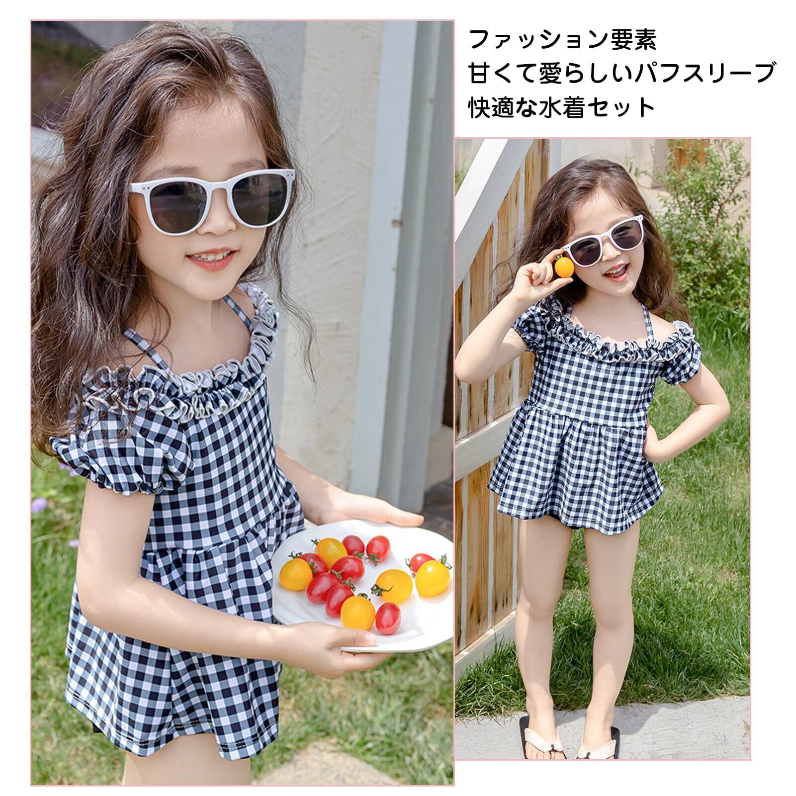 【商品内容】セット内容は3点セット:フリル水着・スイムパンツ・水泳帽子。サイズは90(80-90CM)、100(90-100CM)、110(100-110CM)、120(110-120CM)、130(120-130CM)があり、お子さんの体長に合わせて選ばれます。下は柔らかいショーツで動きやすい、快適な着心地、お子さまも思う存分遊べます。