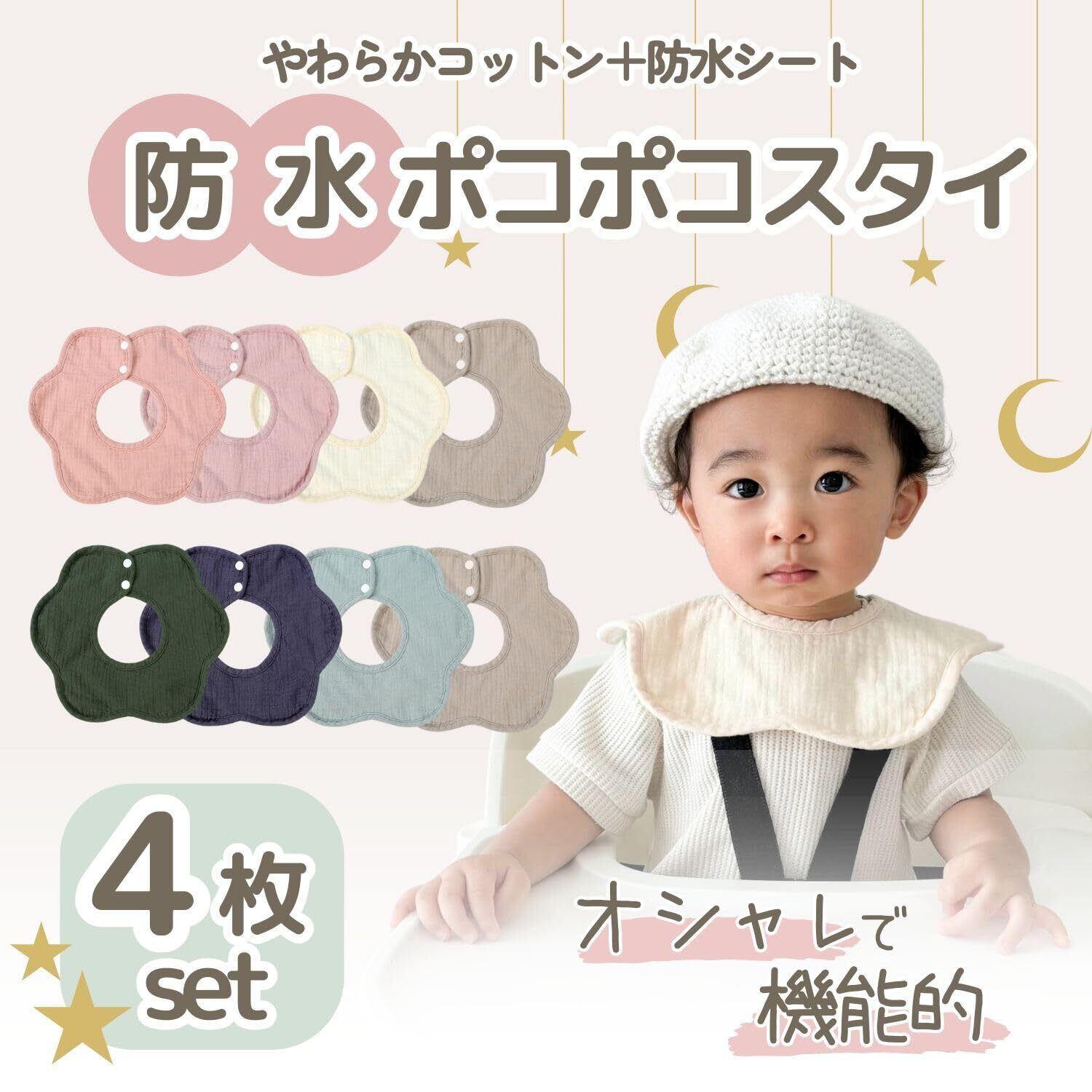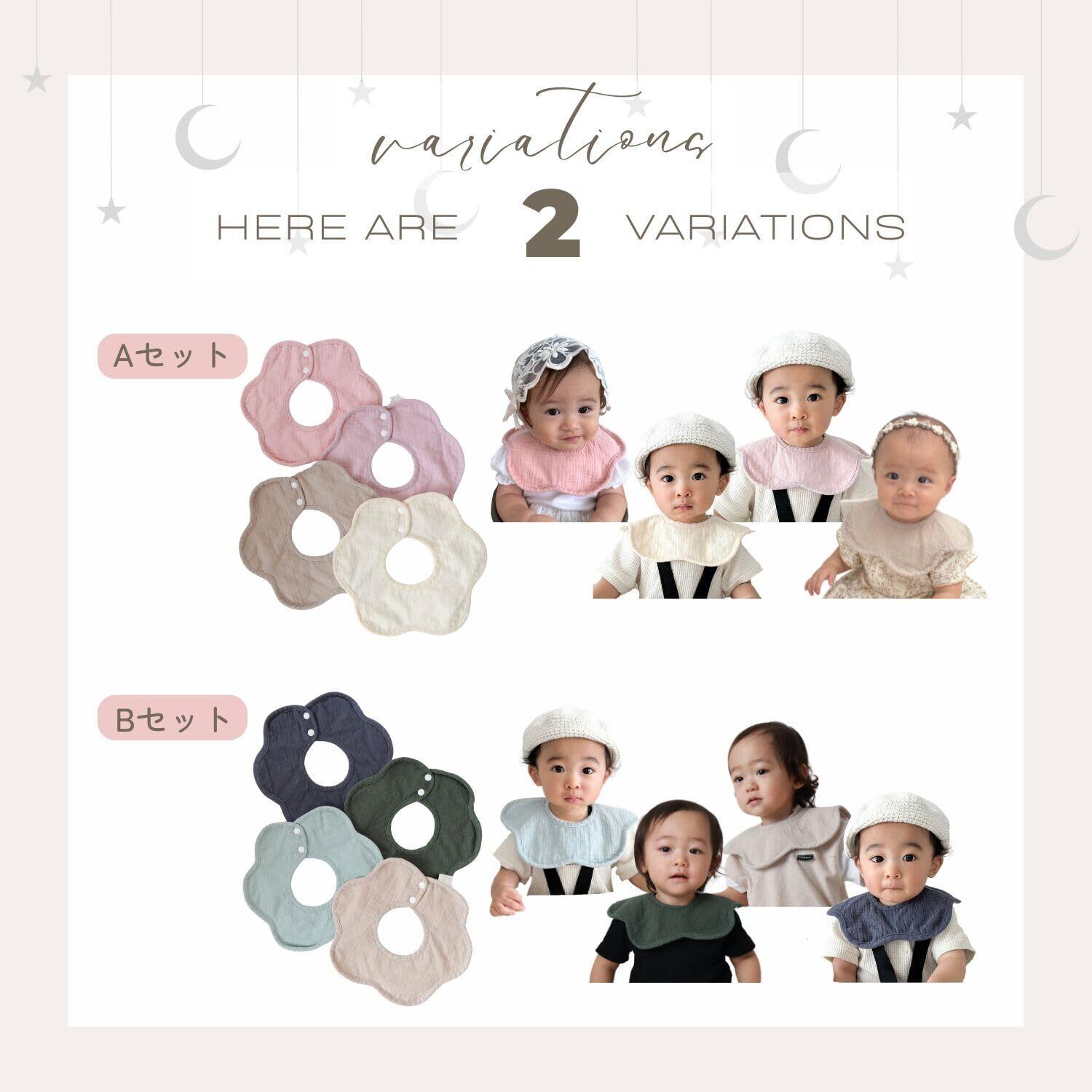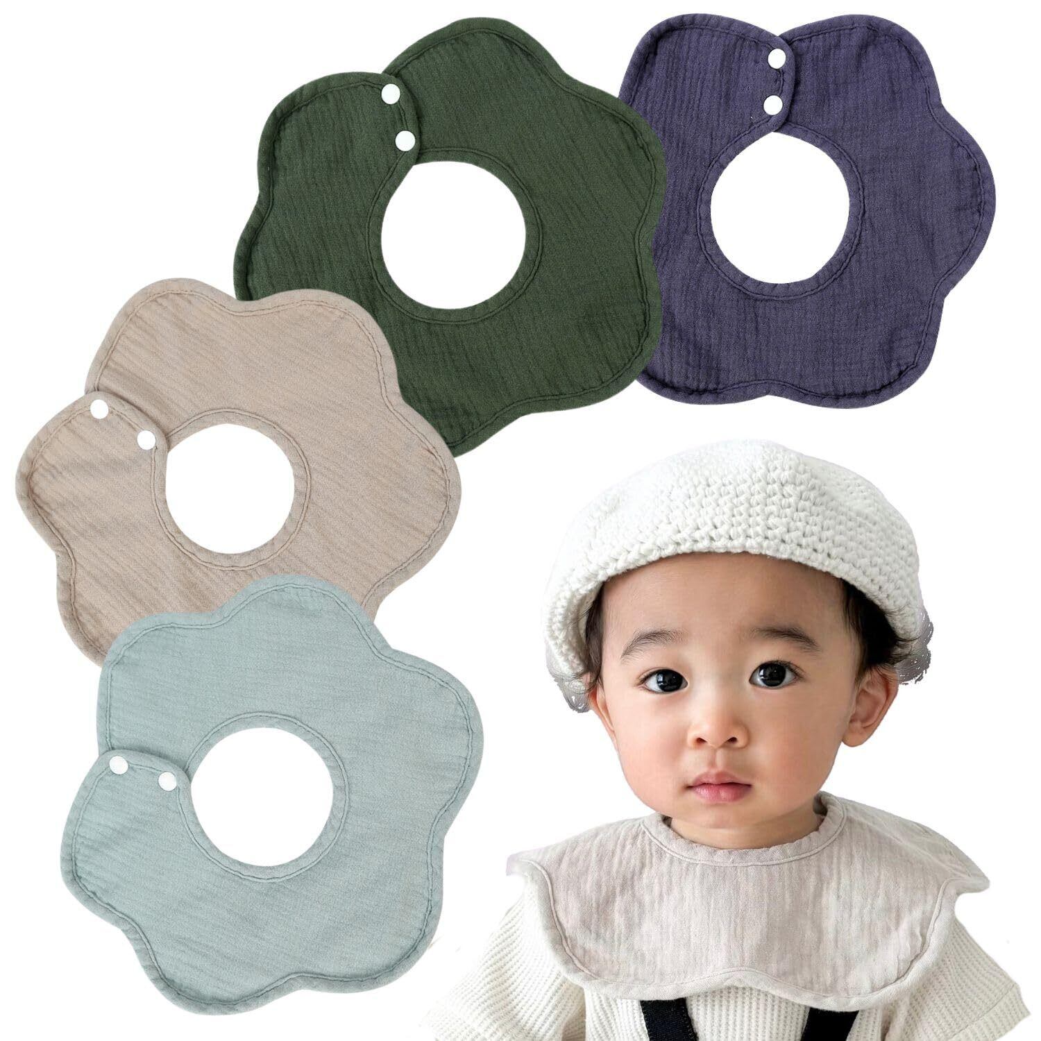 [Ella.] 360° 防水スタイ よだれかけシンプル おしゃれ 4枚セット ベビー 赤ちゃん コットン 綿 防水シート 花形 くるくる 染みない スナップボタンスタイ かわいい 綿100% ベビービブ 男の子 女の子 360 セット