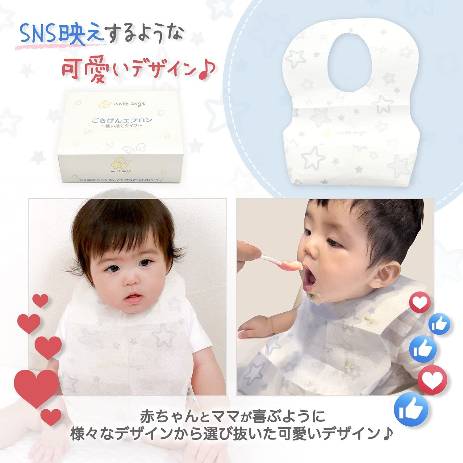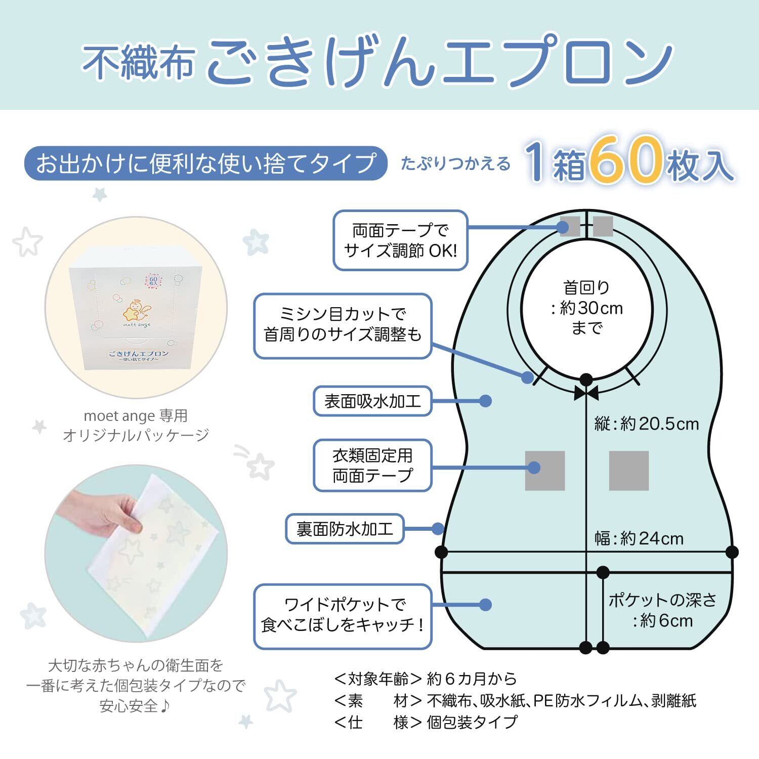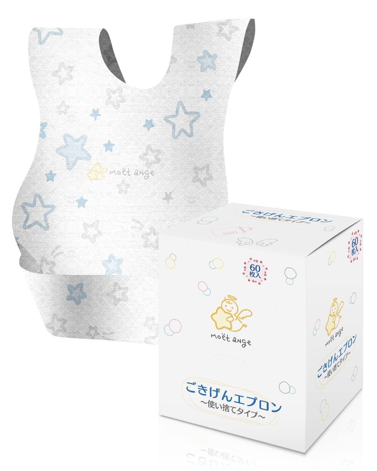 [moet-ange] 使い捨てエプロン ベビー 60枚入 [個包装タイプで持ち運びに便利] 赤ちゃん 子供用 スタイ よだれかけ 出産祝い 個包装タイプ