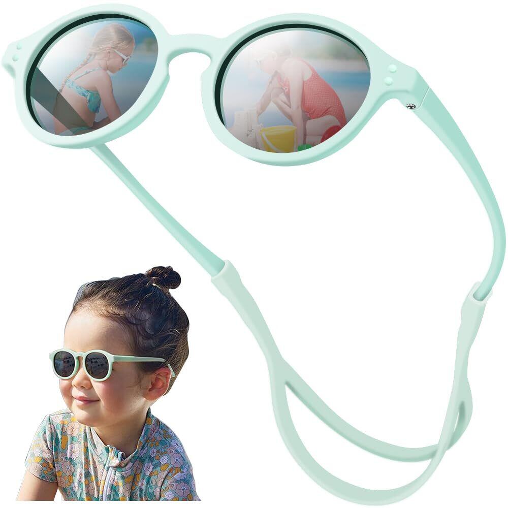 HEARTST キッズサングラス 子供用偏光サングラス 柔らかいシリコン 赤ちゃん サングラス ベビー 折れないフレーム 超軽量 柔軟なゴムフレーム ヘッドバンド付き 落下防止デザイン UV400カット 紫外線カット 収納ケース付き 海水浴 旅行写真 お出かけ用 0歳~2歳用 (グリーン)