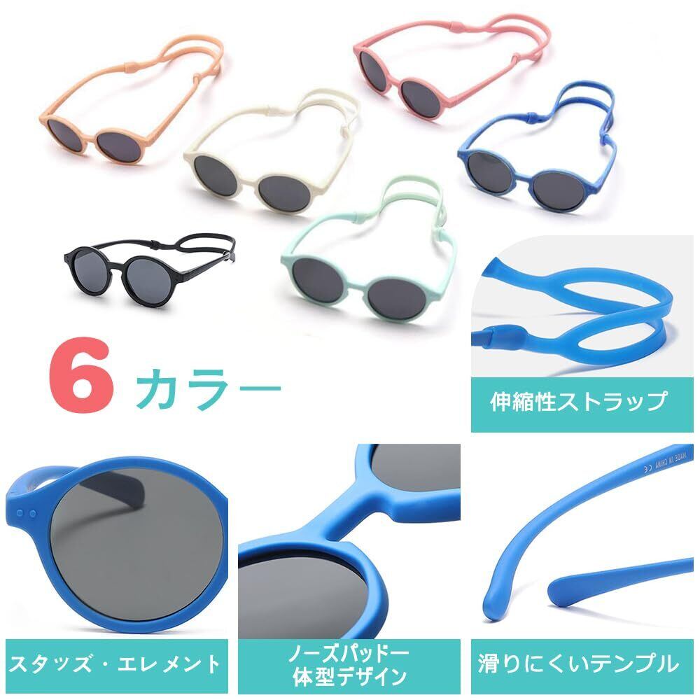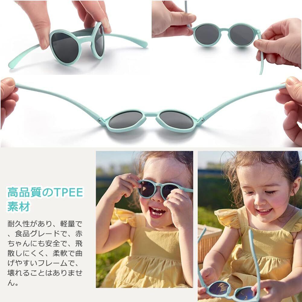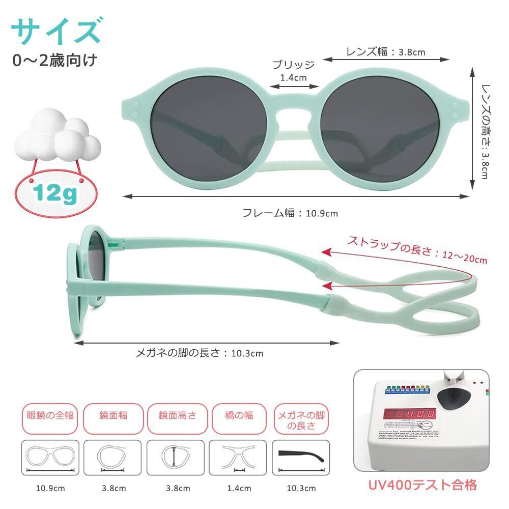 【プレミアム素材】 弊社のベビーサングラスは高品質のTACレンズとTPEEフレームで作られ、耐久性があり、軽量で、食品グレードで、赤ちゃんに安全です。重量はわずか12gで、赤ちゃんが長時間かけても圧迫感がなく、変形や破損しにくく、ソフトで柔軟性があり、繊細な外観で、丈夫で弾力性があり、無毒で、赤ちゃん、園児、幼児に流暢な使用体験をもたらします。