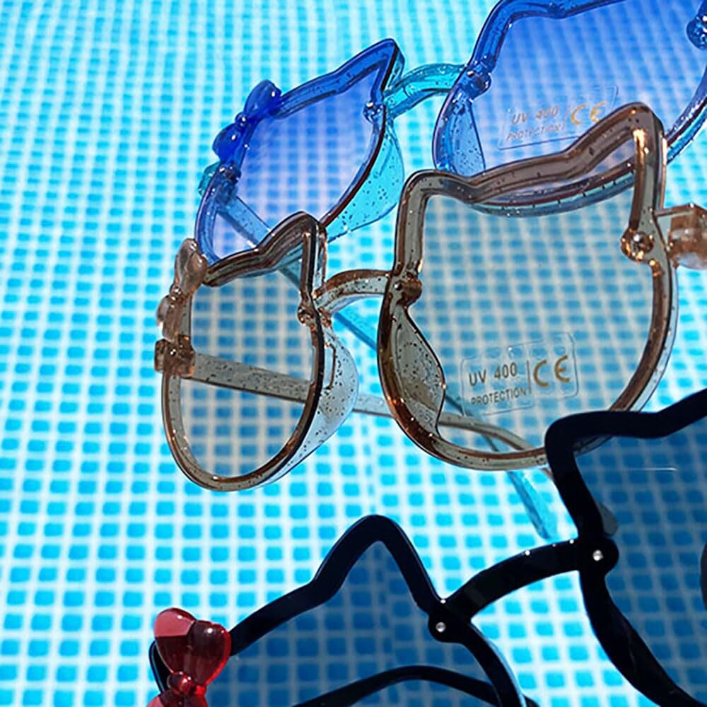 カラフルでお洒落なサングラスですが、レンズはUV400で大切な目を紫外線から守ってくれます。お子様ならではのカラフルなサングラスです!!毎回完売の大人気なねこ耳に、今回はリボン付のフレームをご用意しました。 クリアブルーは、フレームとテンプル部分はラメ入りで、リボンは同色ですがラメ無しです。また、レンズも薄い色がついている感じの半透明ですが、UVプロテクト効果は他色同様にUV400です。また、レンズの下半分が薄いピンクのグラデ―ションレンズになっております。お洒落で軽くて機能的。ソフトケース付きなので、紛失や破損も安心です。クリアブルーはブルーのケースでのお届けになります。