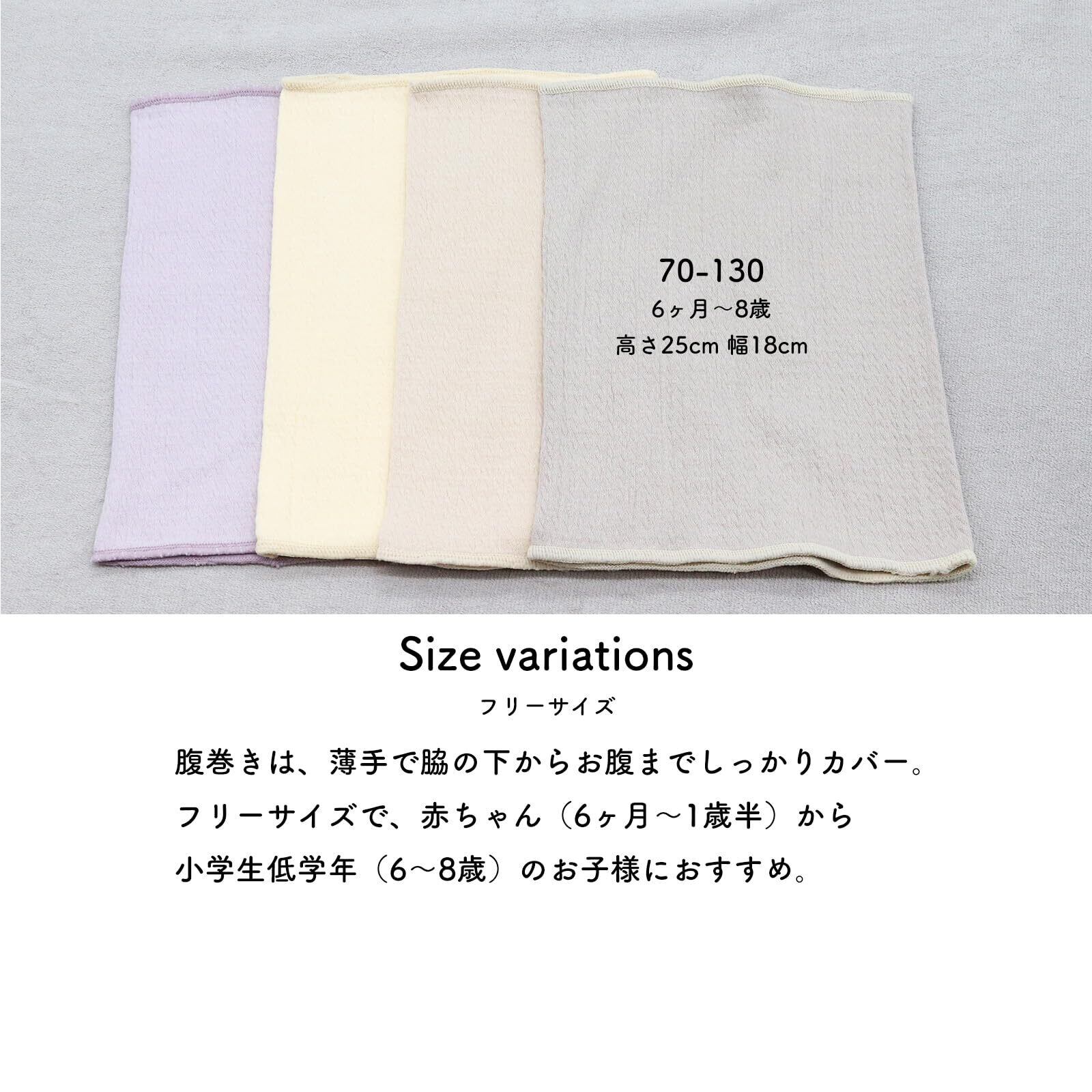 腹巻きは、薄手ですが、お腹をしっかりカバーします。赤ちゃん(6ヶ月~1歳半)から小学生低学年(6~8歳)のお子様におすすめ。