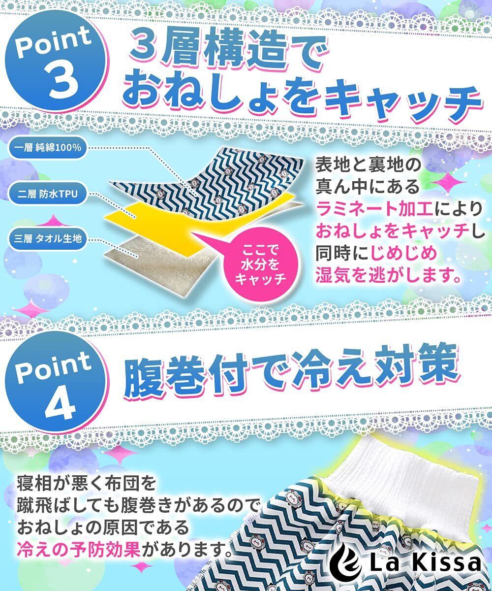 La Kissa おねしょ ズボン おねしょケット 対策 ズボンタイプ 天然綿 100% 防水 通気 女の子