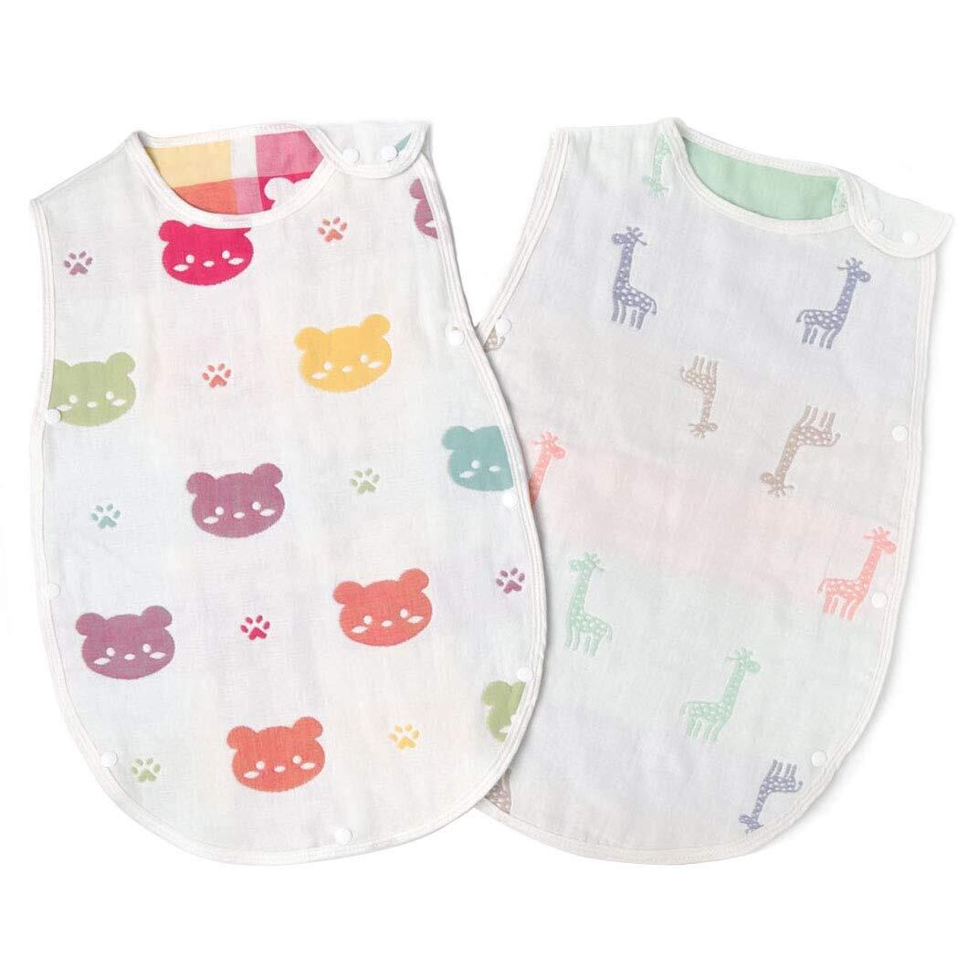 [マカロン] スリーパー 6重ガーゼ ベビー 赤ちゃん キッズ パジャマ 2枚セット 寝袋 春夏秋冬 コットン 100% 寝冷え防止 出産お祝い ギフト65*40cm(新生児〜3歳
