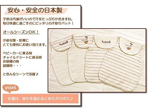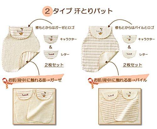 [ぷらすことーね] 日本製 汗取りパッド ベビー 赤ちゃん オーガニックコットン 選べる2種類の生地 パイル生地 ガーゼ生地 背中 ボーダーガーゼ 2枚セット