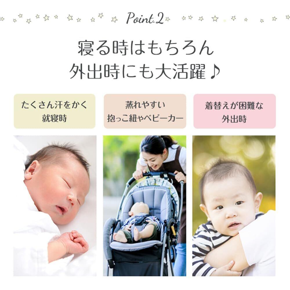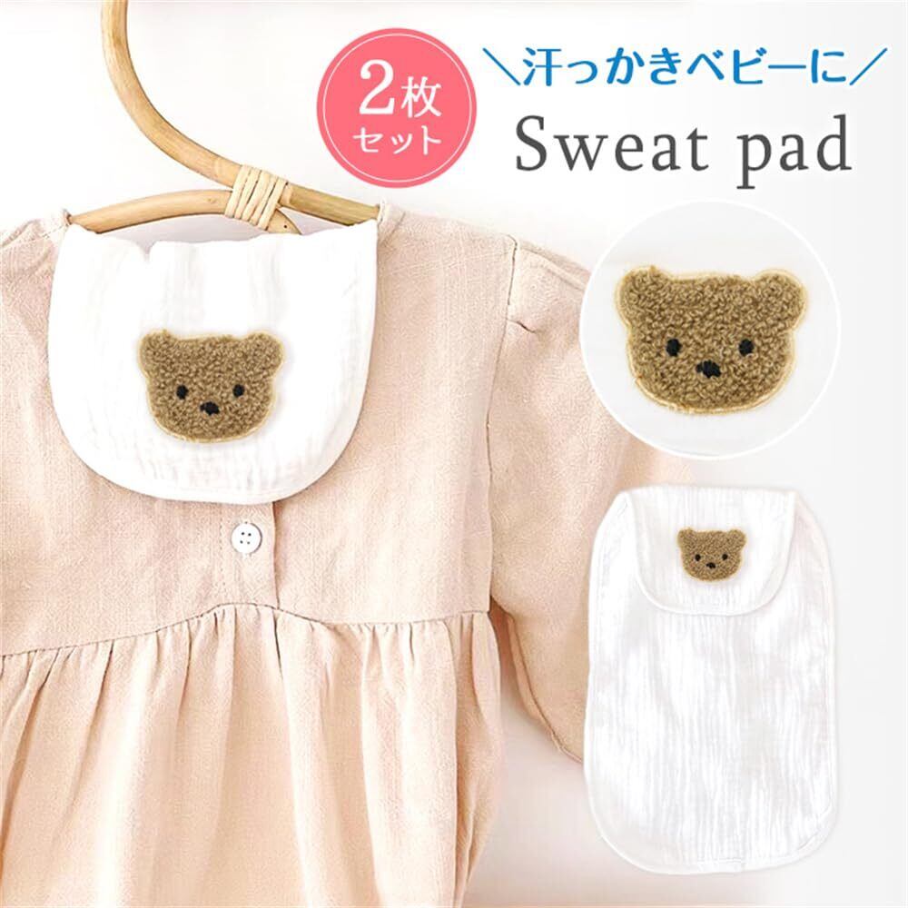 【2枚セット】:お着替えのために2枚組を用意しております。お着替えの回数を最小限に、汗取りパッドを交換するだけ。シーズンを問わず汗をかきやすい赤ちゃんの肌と笑顔を守ります。