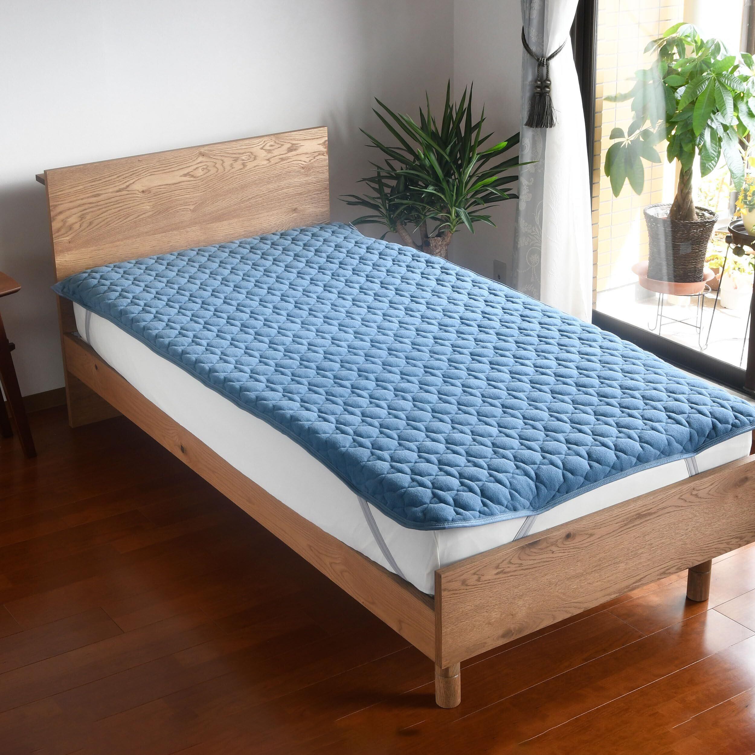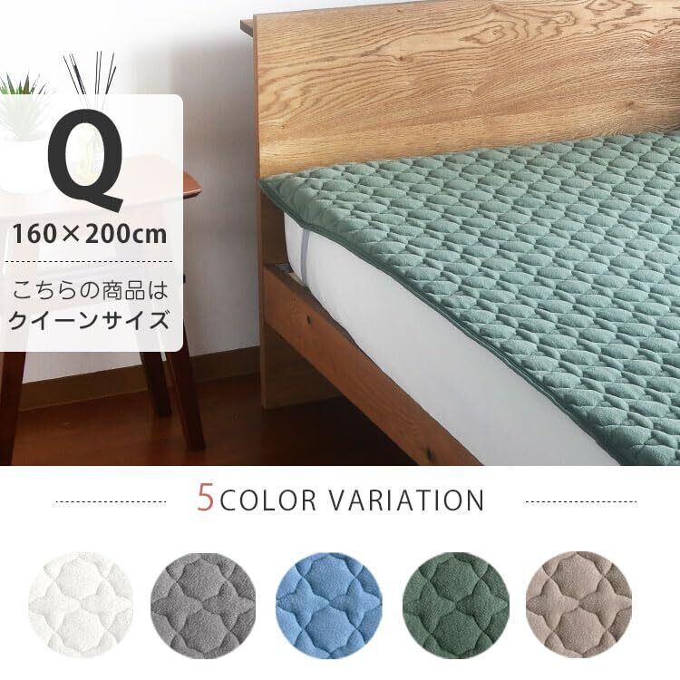 [ブロッコリーハウス]敷パッド クイーン コットン タオル地 タオル生地 オールシーズン 厚手 洗える さらさら モダールコットンパイル 春 夏 秋 冬 綿 滑り止め パイル 汗取り 160cm×200cm 赤ちゃん ベビー(ブルー)