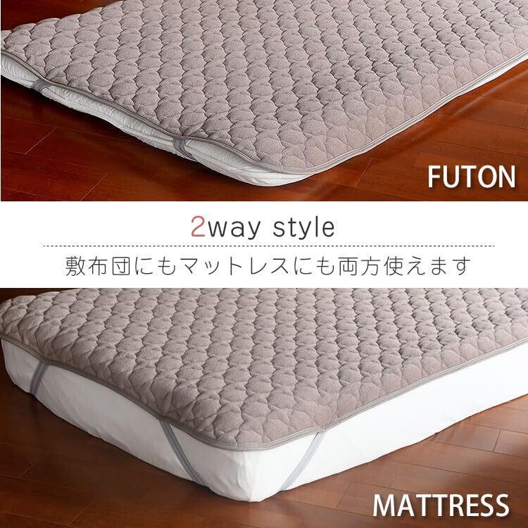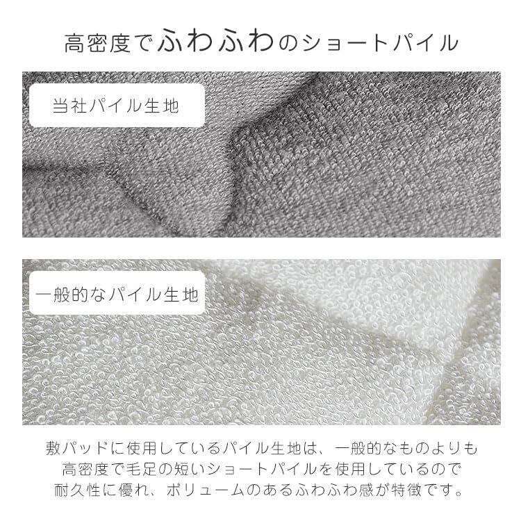 【高密度でふわふわ】一般的なタオル生地に使用されているパイルよりも高密度で毛足の短いショートパイルを使用しています。耐久性に優れボリュームのある厚手のふわふわ感が特徴。敷布団にもマットレスにも対応しているので敷パッドとしても、ベッドパッド、マットレスカバーとして幅広くご使用いただけます。