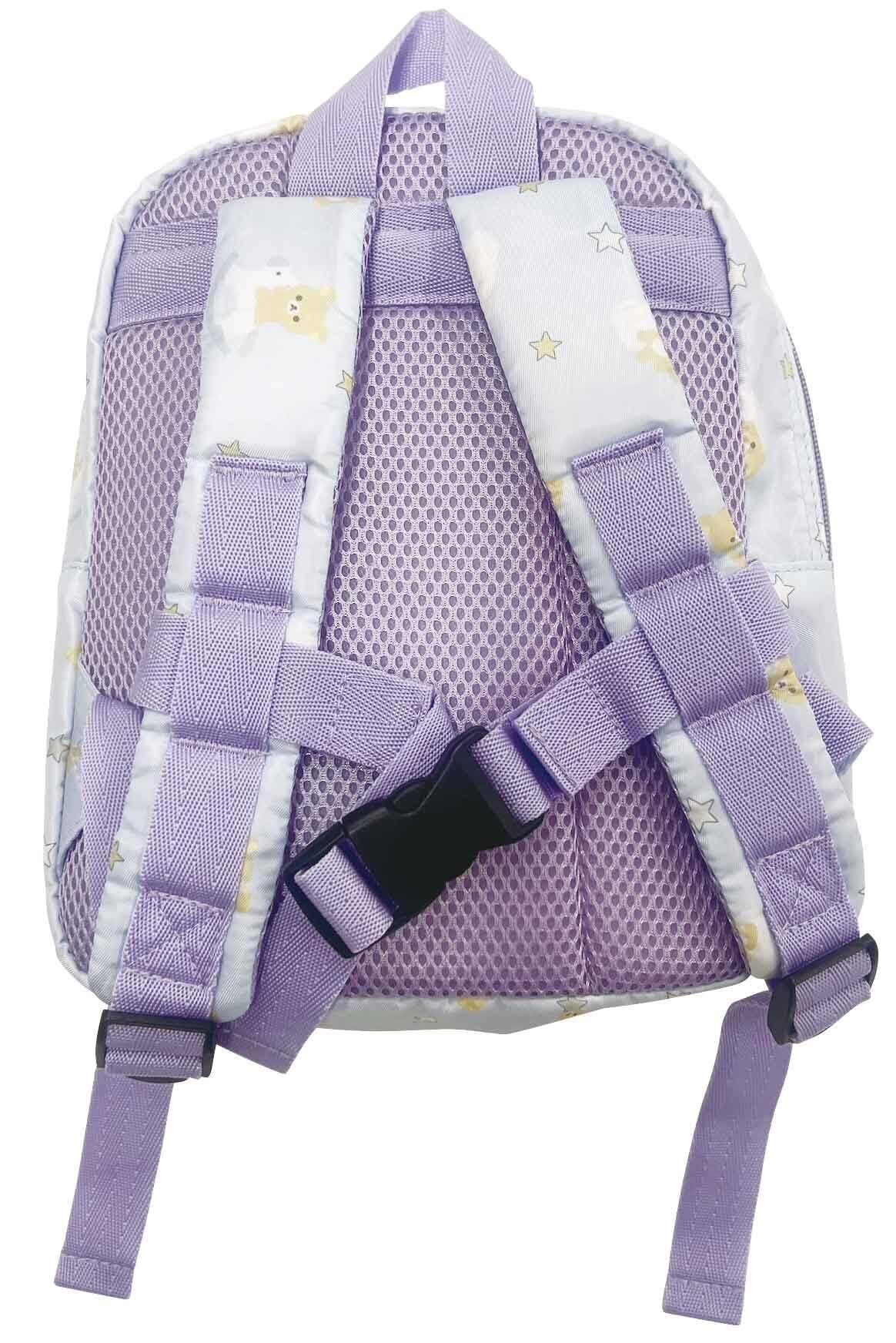 リュックのズレ落ちを防いでくれるズレ落ち防止ベルト付き。かわいいリラックマのエンボス加工のワッペンとオリネーム付き。