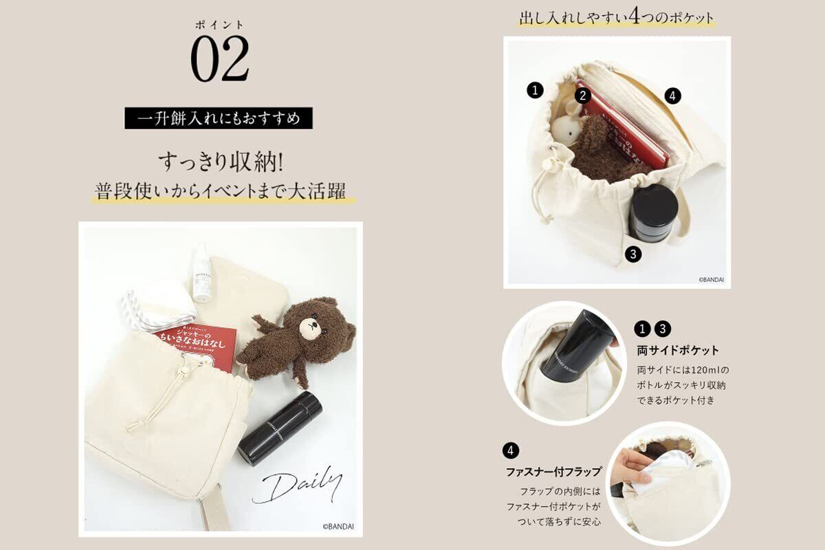 【ベビー・ママが嬉しいこだわり】①大人気絵本「くまのがっこう」のジャッキーデザイン②一升餅がぴったり入るサイズでお誕生日プレゼントにもぴったり!③マザーズバッグとお揃いで”親子リンク”が楽しめちゃう