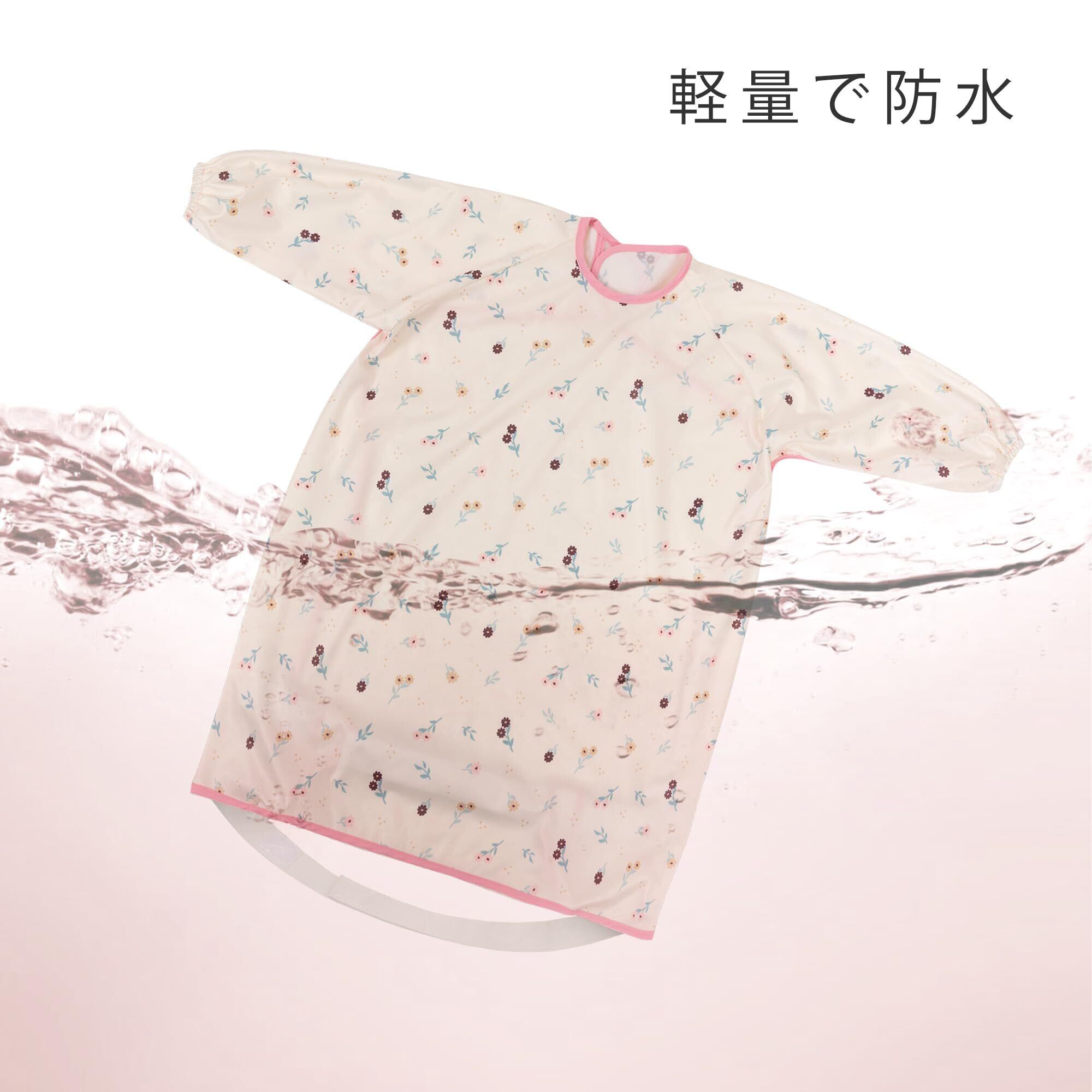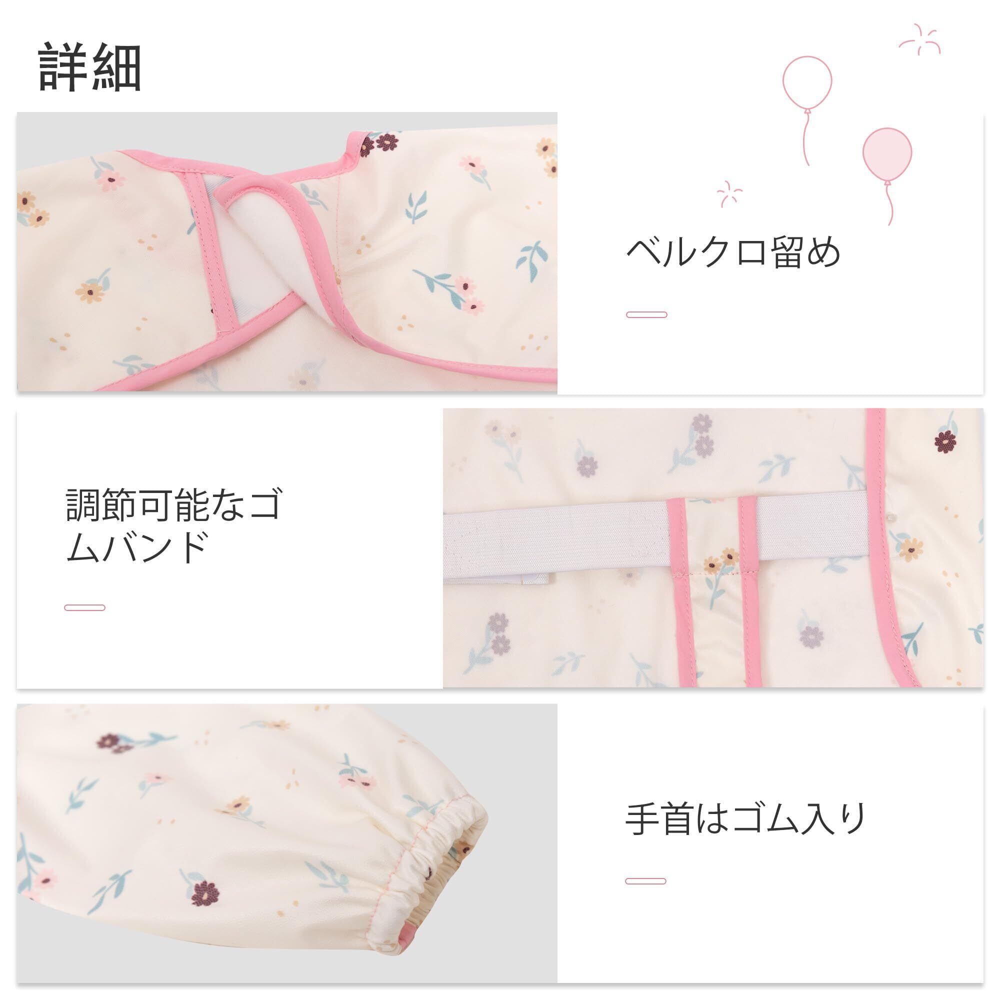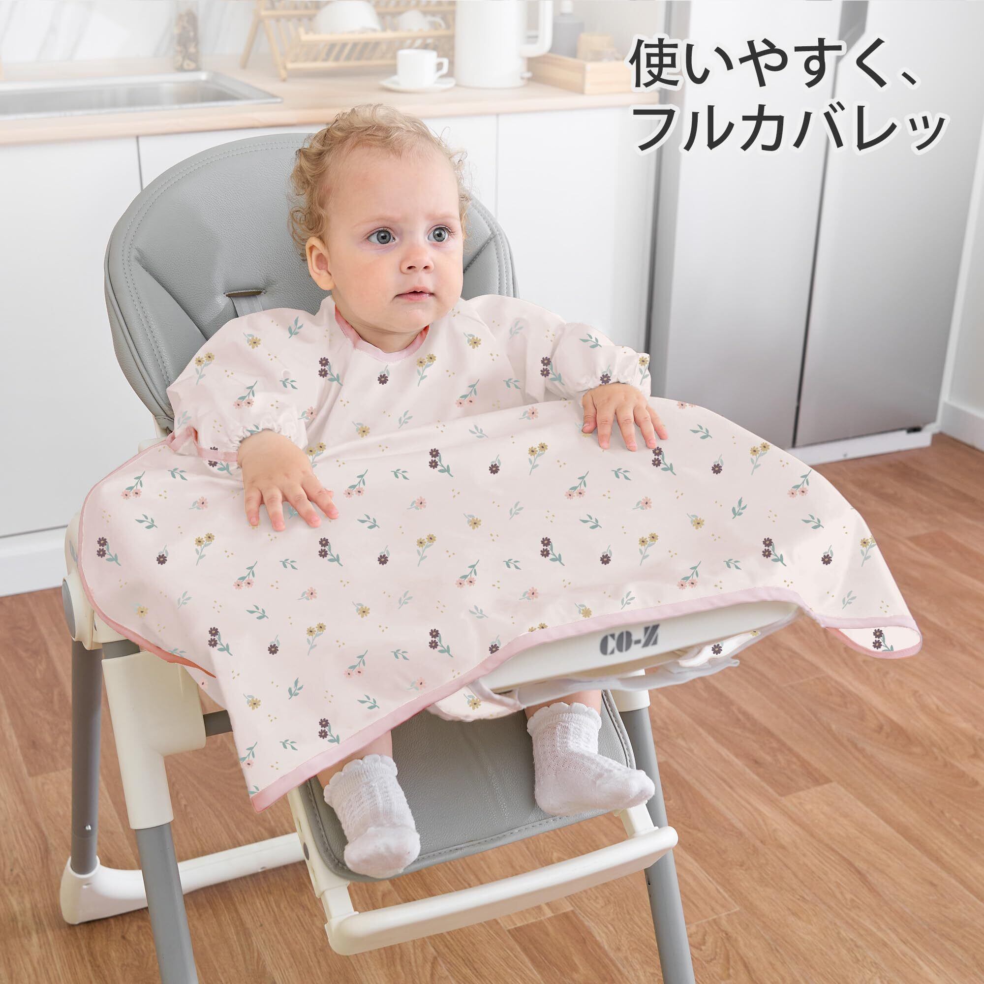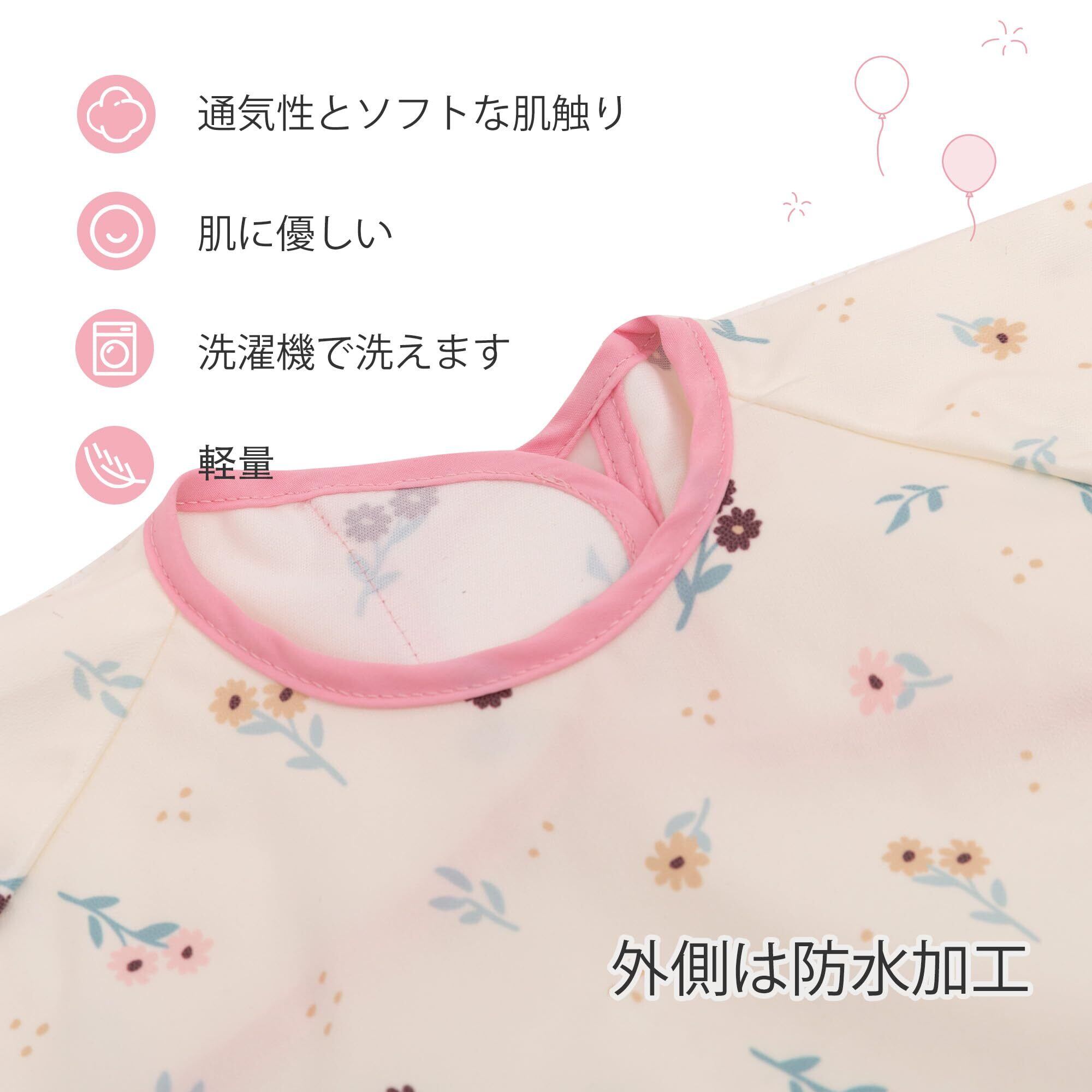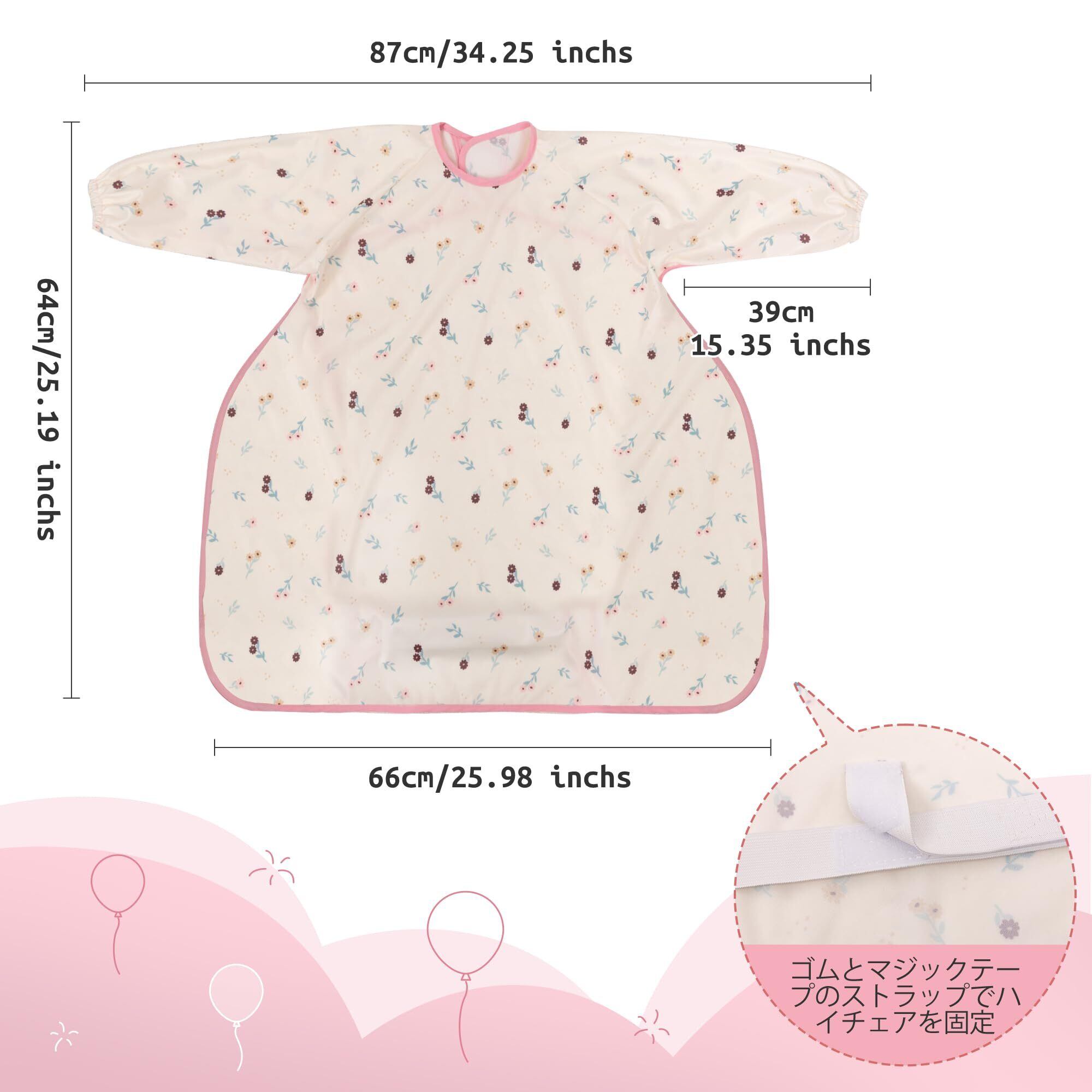 [Little Dimsum] お食事エプロン 長袖離乳食エプロン 一体型よだれかけ ベビーとハイチェア用 保育園 子供 赤ちゃん 防水 汚いにくい 洗いやすいと乾きやすい(小さい花)