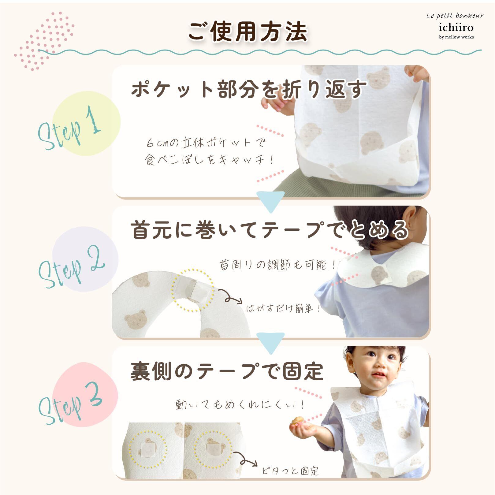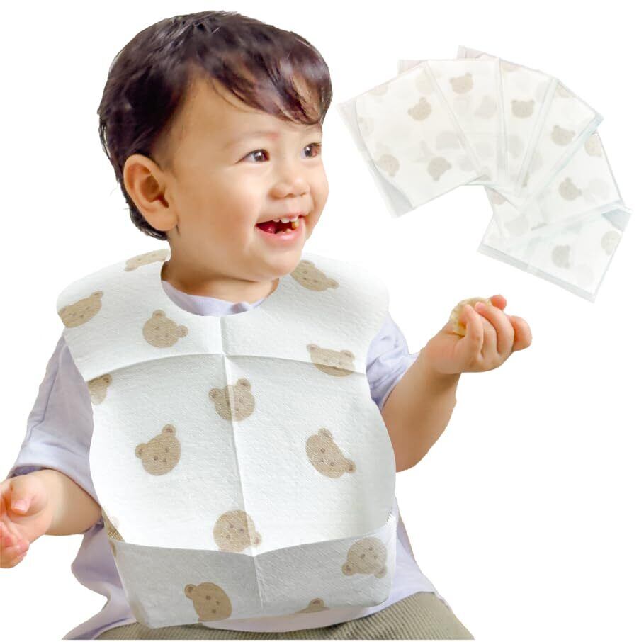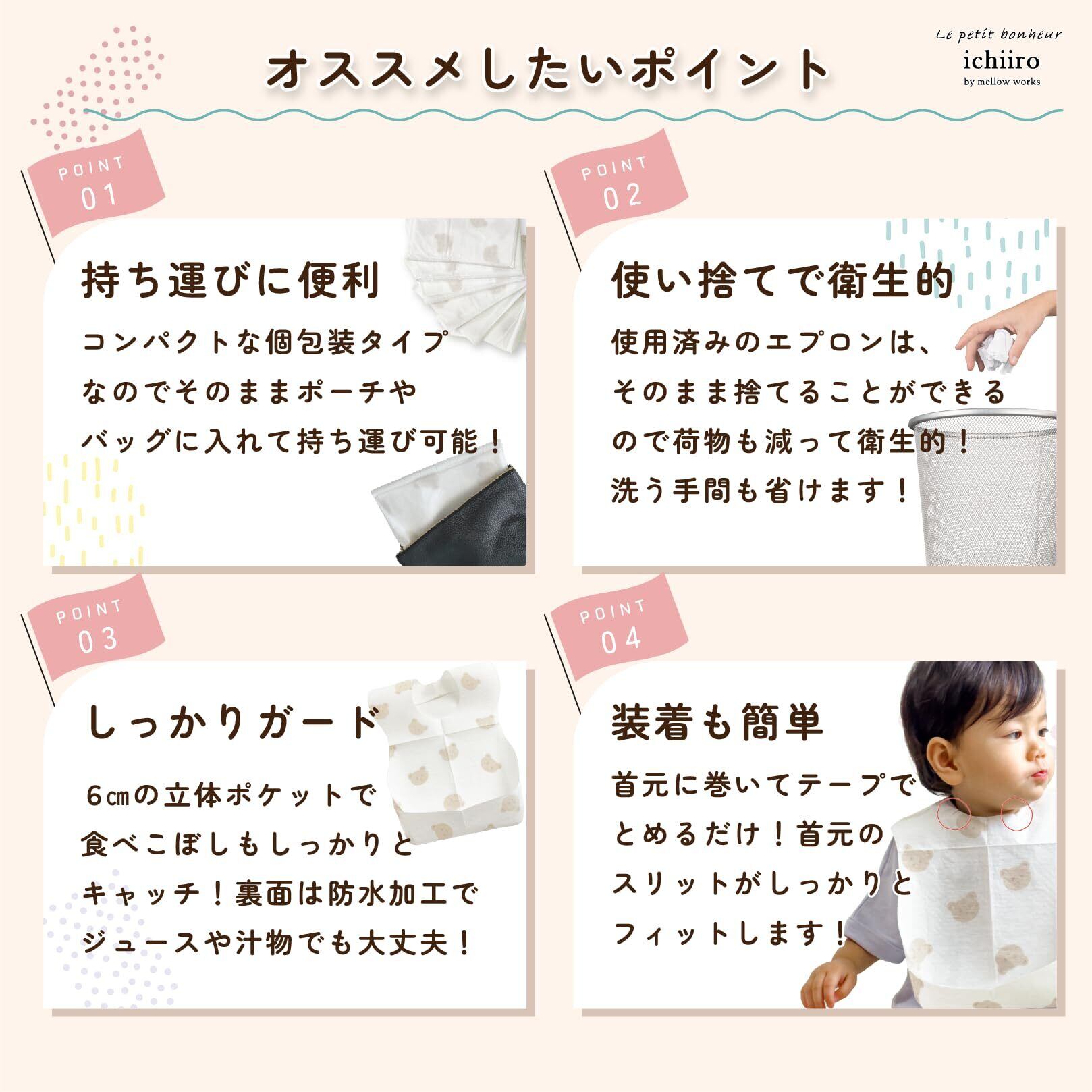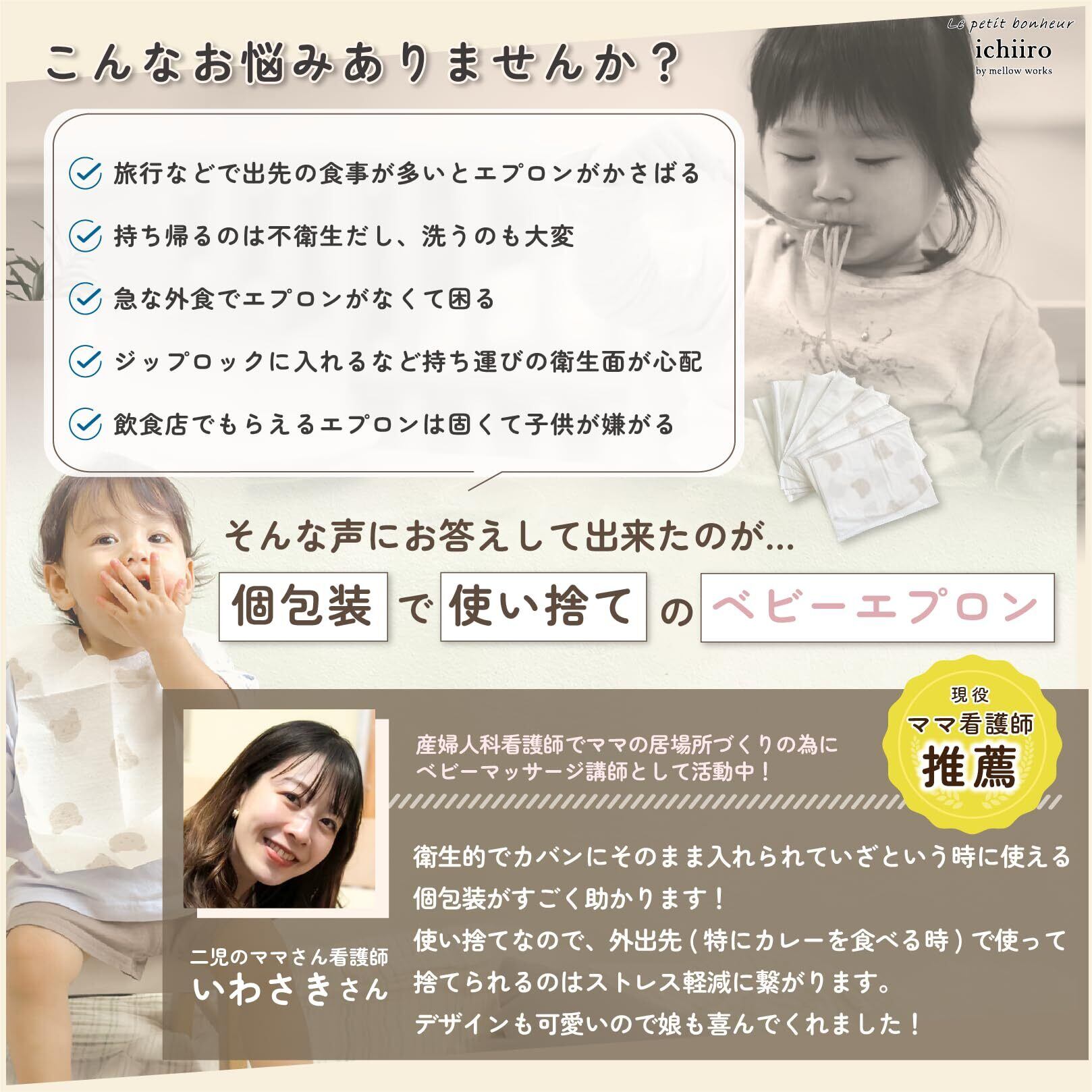 [ichiiro] 【現役ママ看護師推薦】 使い捨てエプロン [持ち運びに便利な個包装50枚/100枚] スタイ 大きなくまさん柄 ベビー 赤ちゃん 紙エプロン