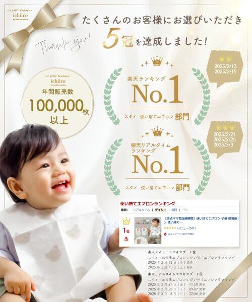 【楽ちんエプロン】使い捨てタイプのエプロンなので、持ち帰って洗う必要もありません。忙しいママの負担を軽くします。また、軽く首回りも柔らかいので赤ちゃんにも優しい装着感です。