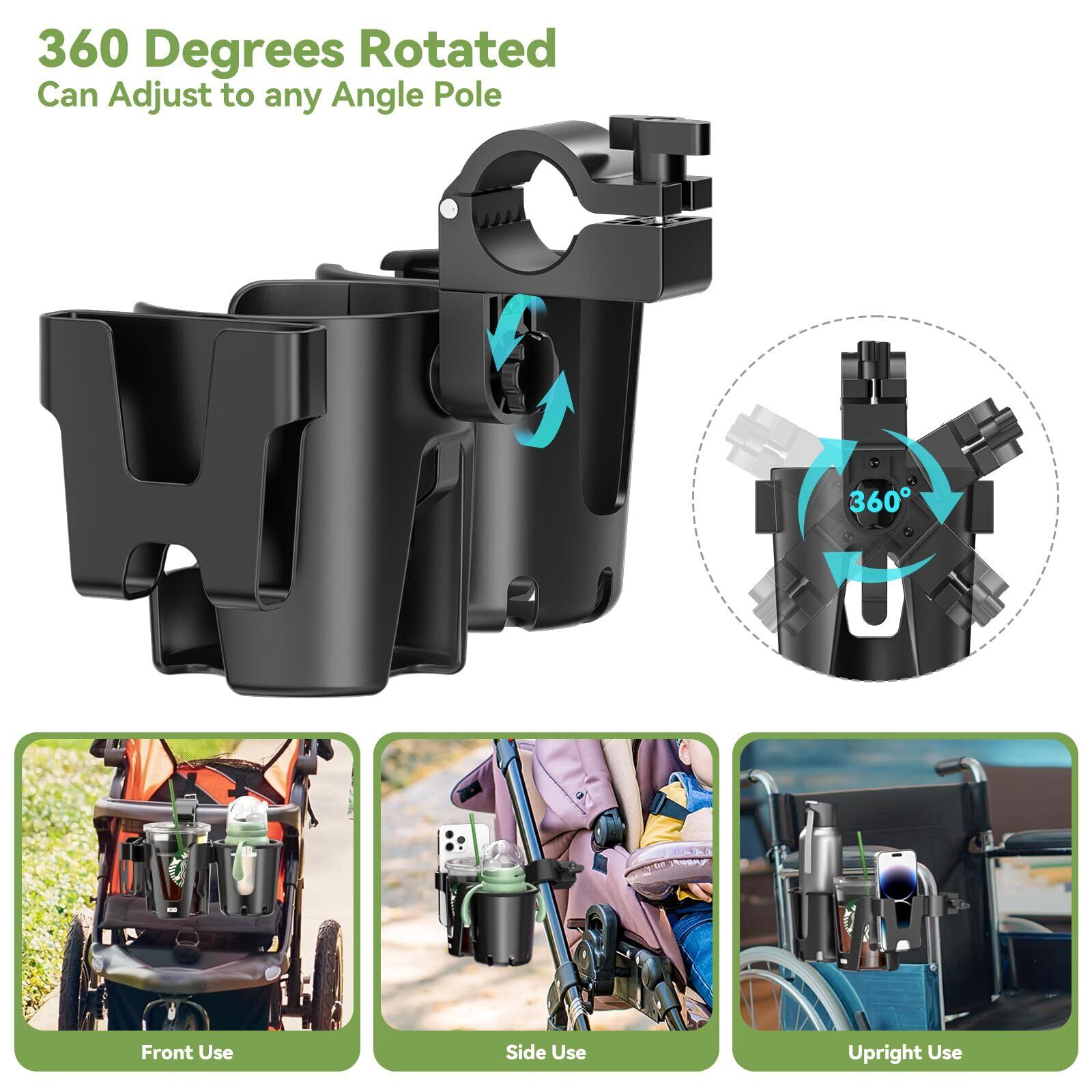 KDD ベビーカー ドリンクホルダー 2個 自転車 スマホホルダー付き、3-in-1 取り外し可能な自転車 カップホルダー 360°回転ボトルホルダー、車椅子、バイク、ピジョン、キャンプ、エアロバイク、Uppababy, Nuna, Bugaboo, Doonaに適用するベビーカー アクセサリー