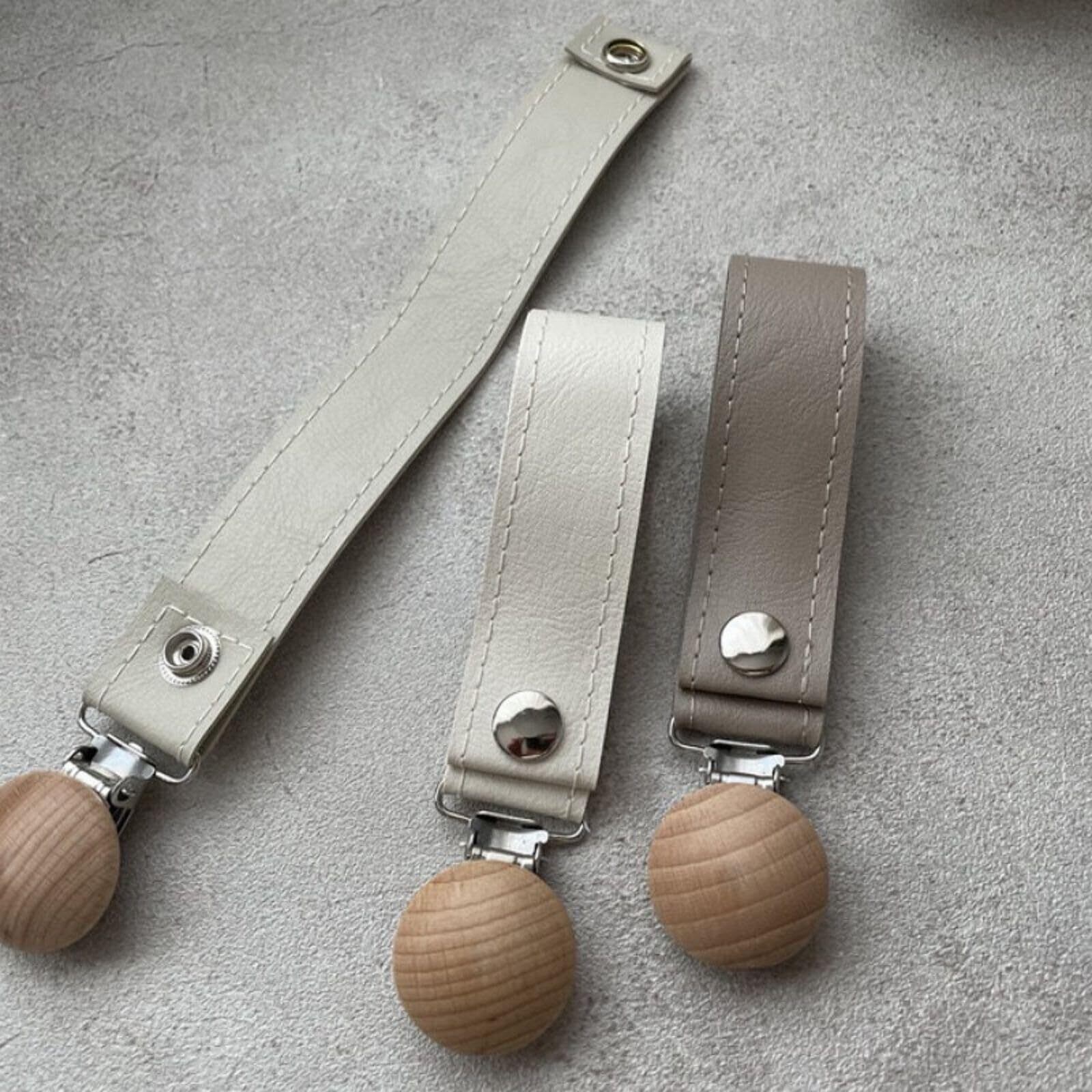 【製品仕様】◆商品名:ベビーカー用ブランケットクリップ◆サイズ:H170*W25*D15mm◆ベルトの長さ:125mm◆重量:22.5g/個◆素材:木&PU ◆パッケージ内容:クリップ×2個