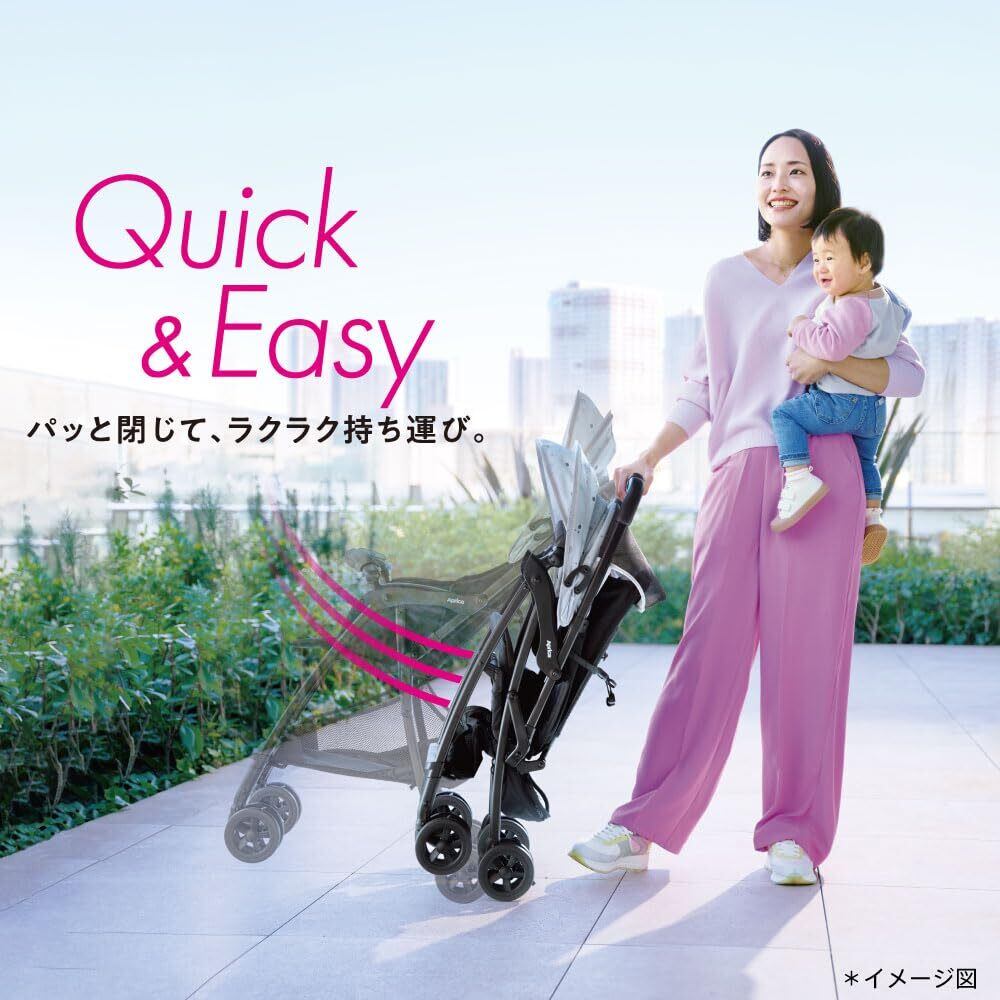 【パッと閉じて、ラクラク持ち運び】軽量3.3kg。片手ワンタッチ開閉。生後7か月から使えるコンパクトなB形ベビーカー。
