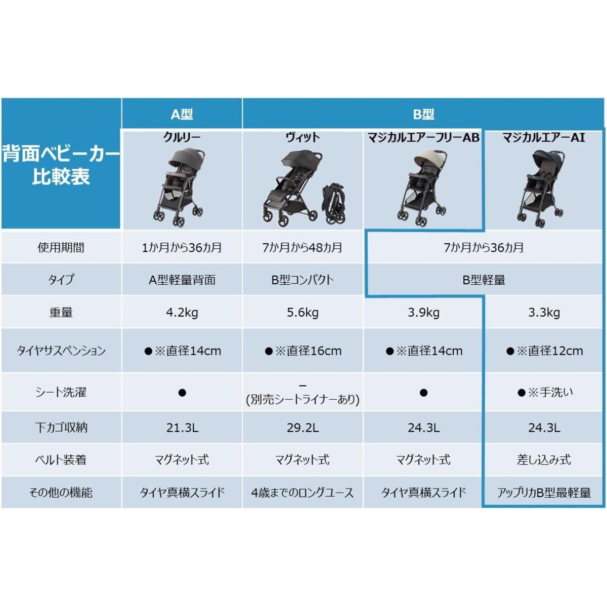 ●アップリカの「マジカルエアー AI」は生後7か月から使える軽量3.3kgのB形ベビーカー。