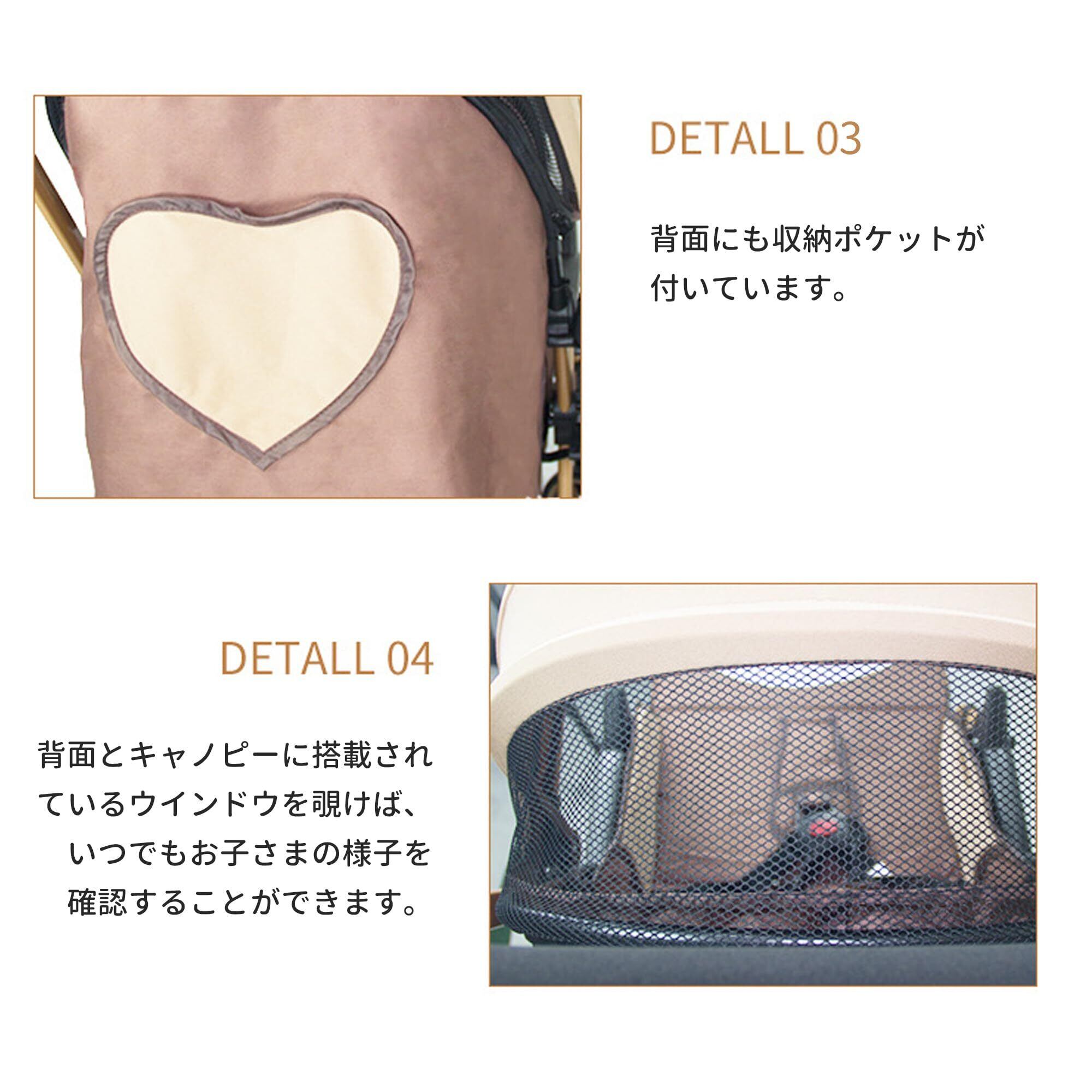 【安心覗き窓付き日除けカバー】通気性素材の日除けカバー付属。覗き窓から常に赤ちゃんの表情を確認可能。UV50 + カットで日差しからもしっかり保護。