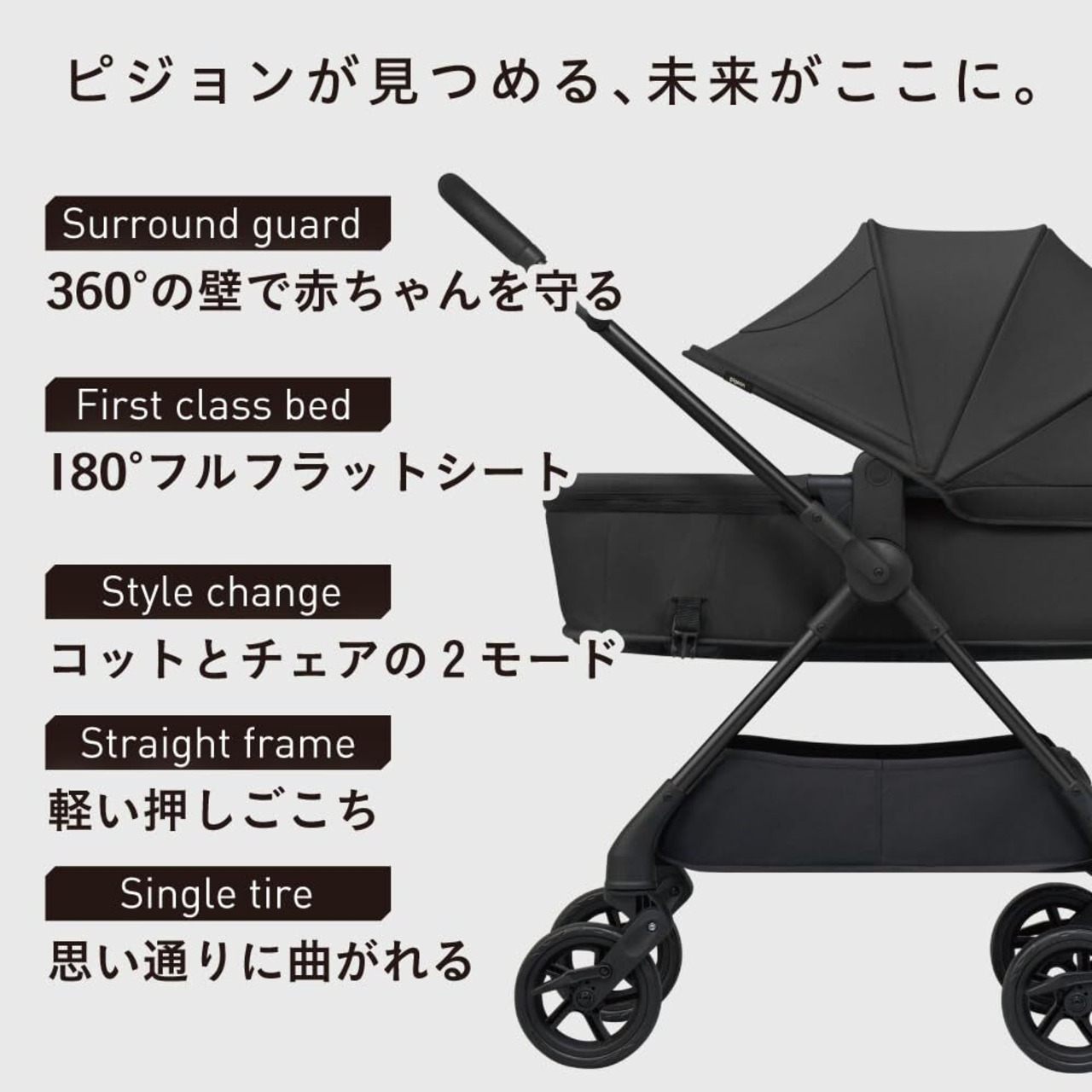 1.赤ちゃんの成長に合わせてStyle changeできる乗りごこち