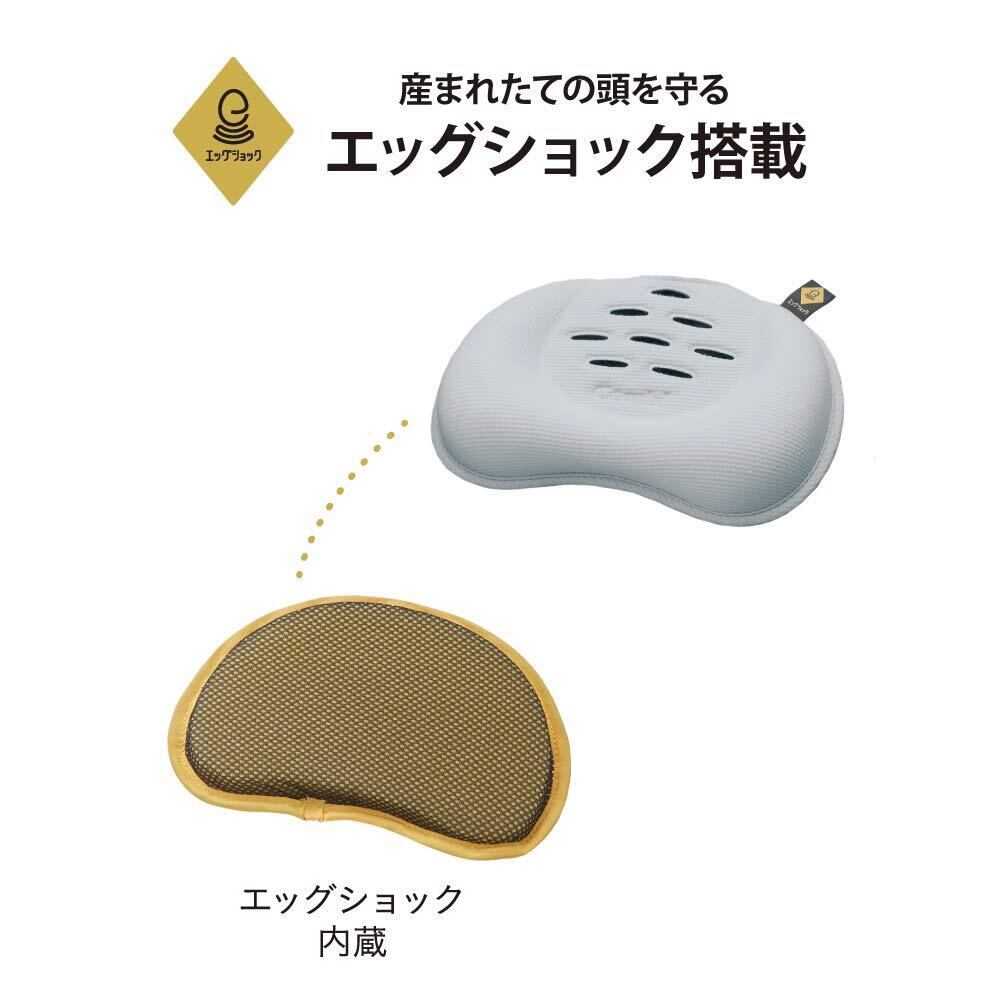 ・卵を落としても割れないほどの超衝撃吸収素材「エッグショック」がヘッドサポートとシート座面に内蔵しており、産まれたての赤ちゃんを守ります。