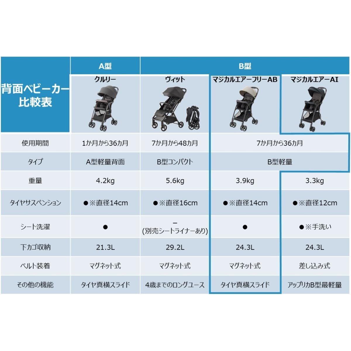 ●アップリカの「マジカルエアーフリー AB」は生後7か月から使える軽量3.9kgのB形ベビーカー。