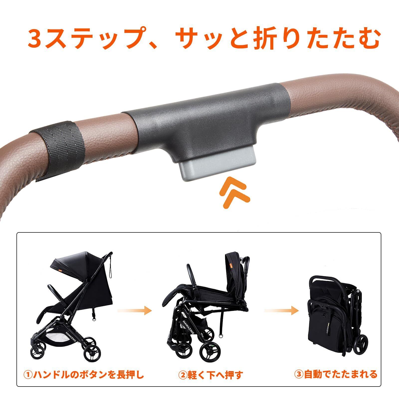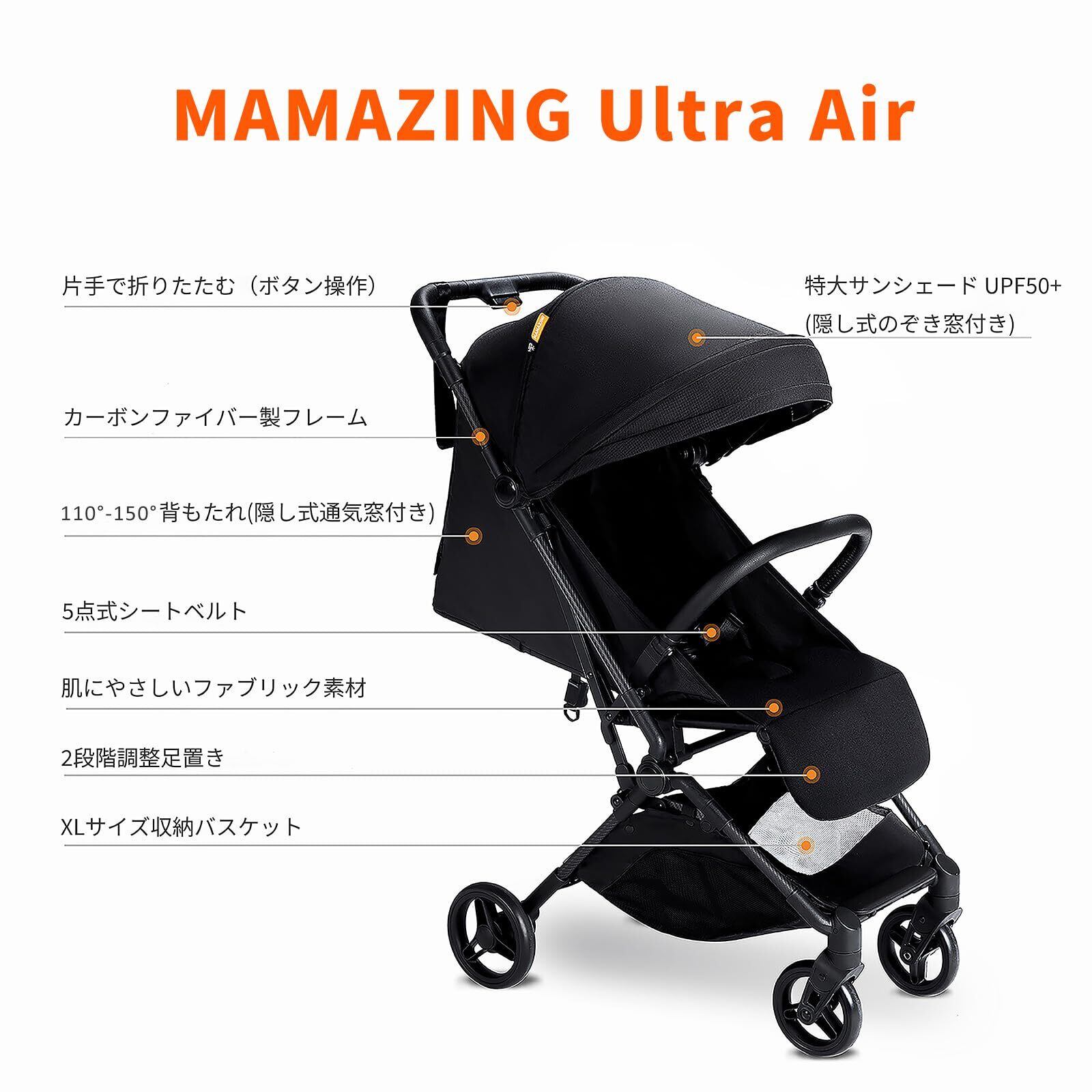 MAMAZING ベビーカー B型 カーボンファイバー製 軽量 コンパクト 片手で折りたたみ 機内持ち込み可 Mom's Choice Awards金賞受賞 生後6ヶ月~4歳頃 5.2kg 収納バッグ付き(ブラック)