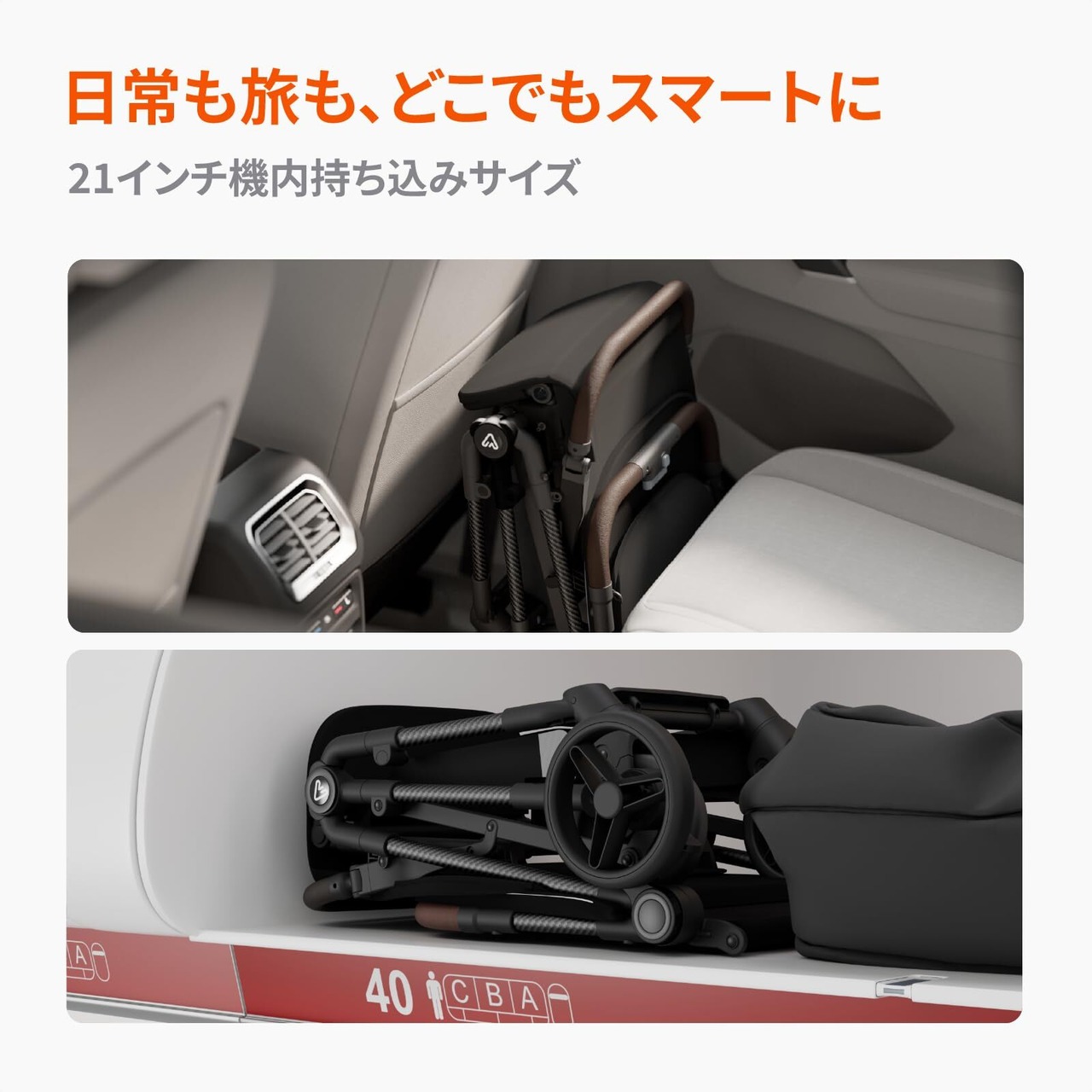 【コンパクトなデザイン】軽量に加え、折りたたみもできて便利です。機内持ち込み対応で、車のトランクやリアシートにもすっきり収納できます。