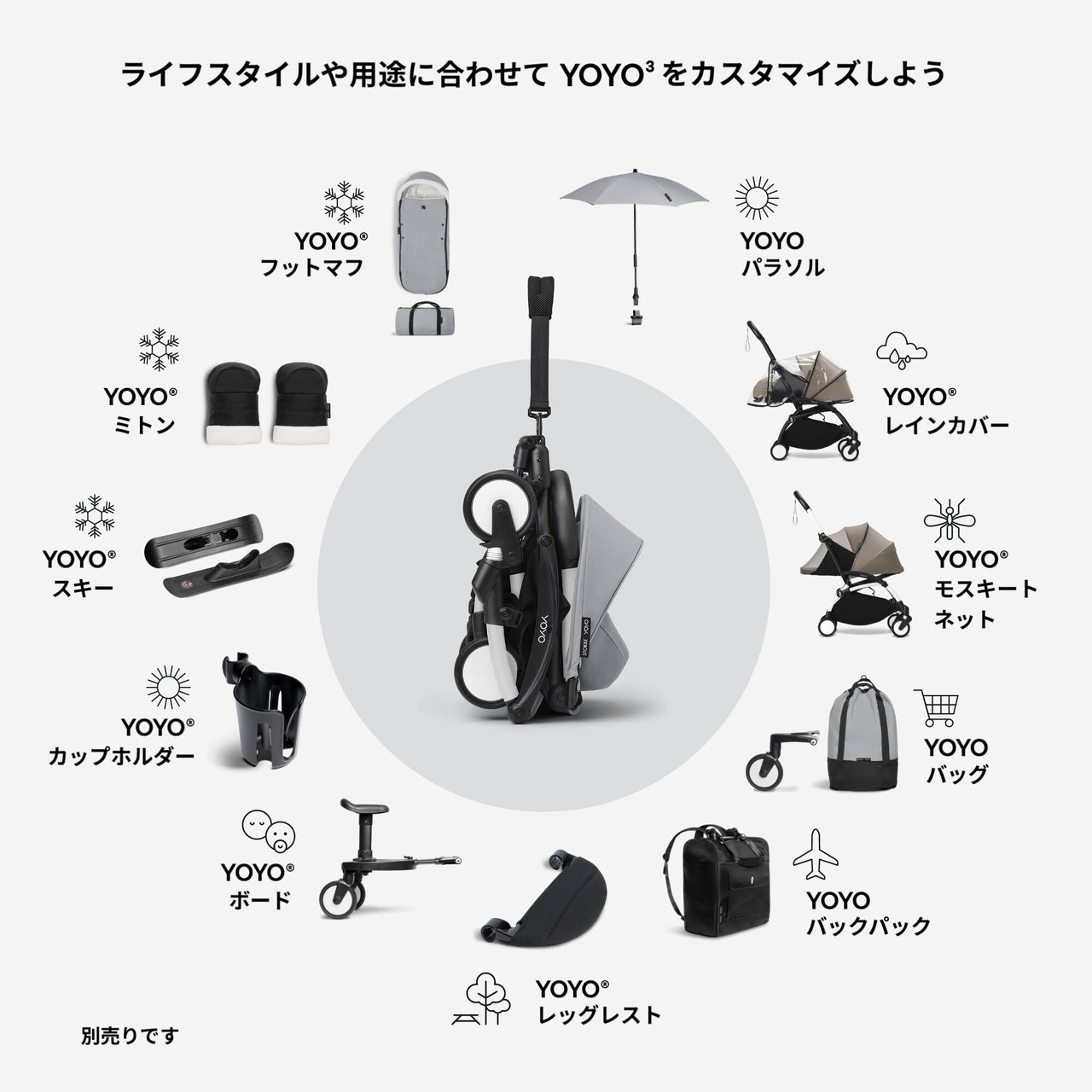 本製品はYOYOベビーカーフレーム本体に取付けて使用する、新生児から使える0+ニューボーンパックのみ単体の販売となります。ご利用の際はYOYOベビーカーフレームのご購入が必要となります。
