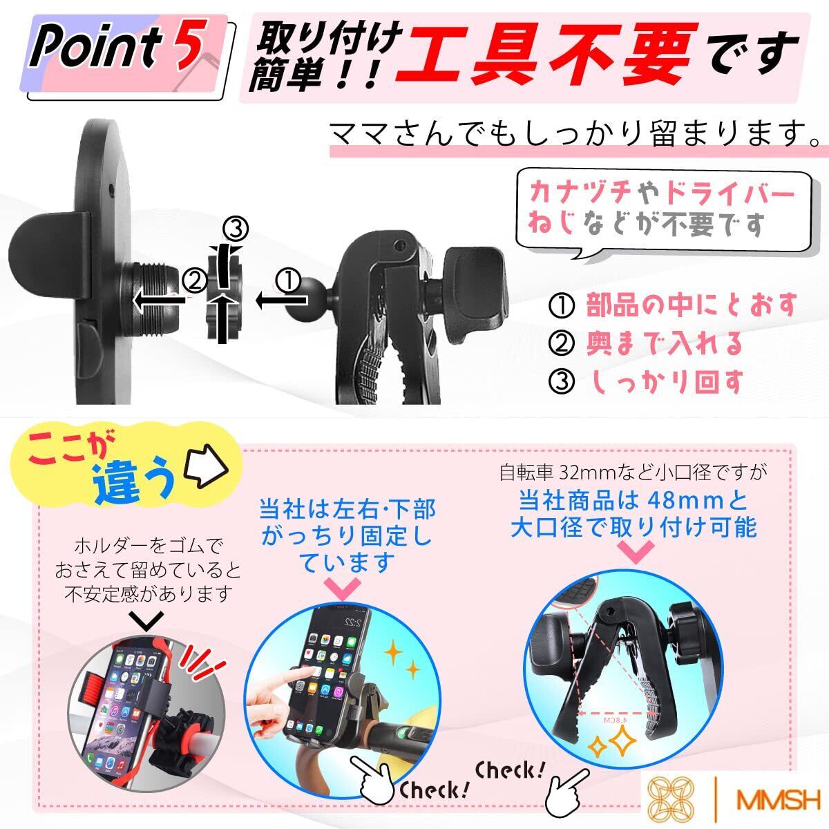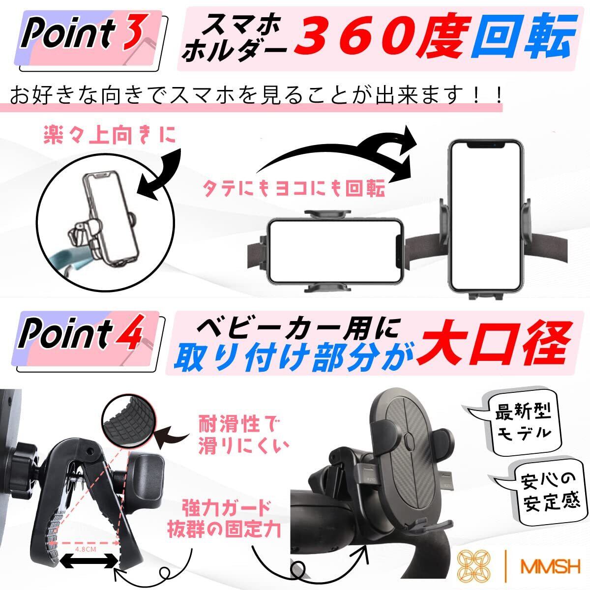 MMSH ベビーカー スマホホルダー ベビーカー 携帯ホルダー 自転車 スマホホルダー 取り付け簡単