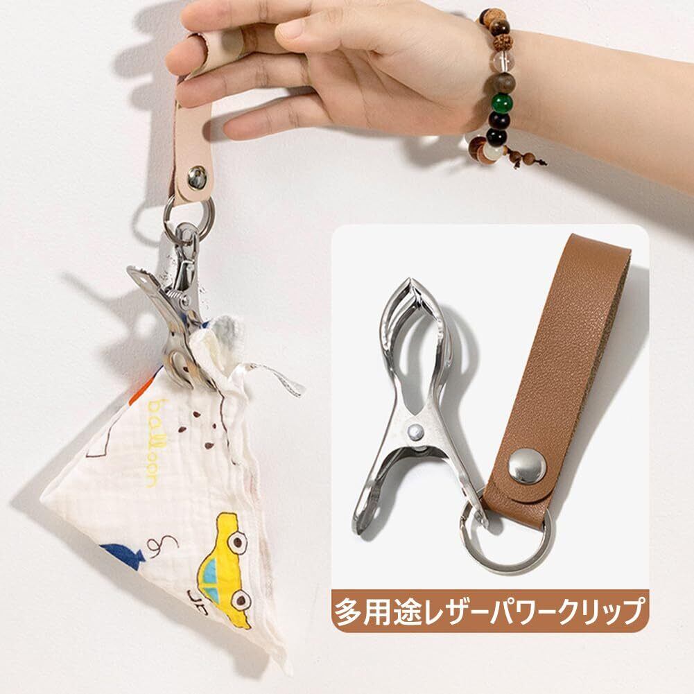 【商品仕様】ベビーカー用シュークリップ×2個、アプリコットとブラウンの2色。 素材: PUレザー + ステンレススチール。 サイズ:幅2cm*長さ12.5cm。