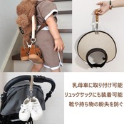 【安全性と快適性】シューズホルダーとベビーカー用フックは、お子様の靴やバッグをしっかりホールドし、脱げたり迷子になったりするのを防ぎ、お子様の快適なお出かけをサポートします。 このクリップを使えば、落下防止にもなります。 お出かけ時の紛失の心配もありません。