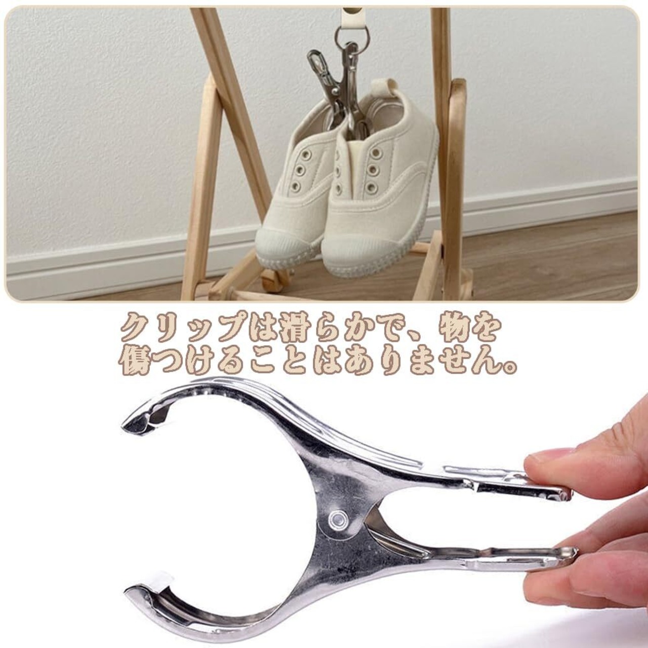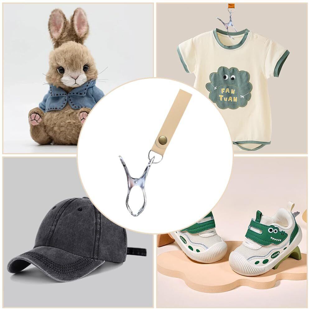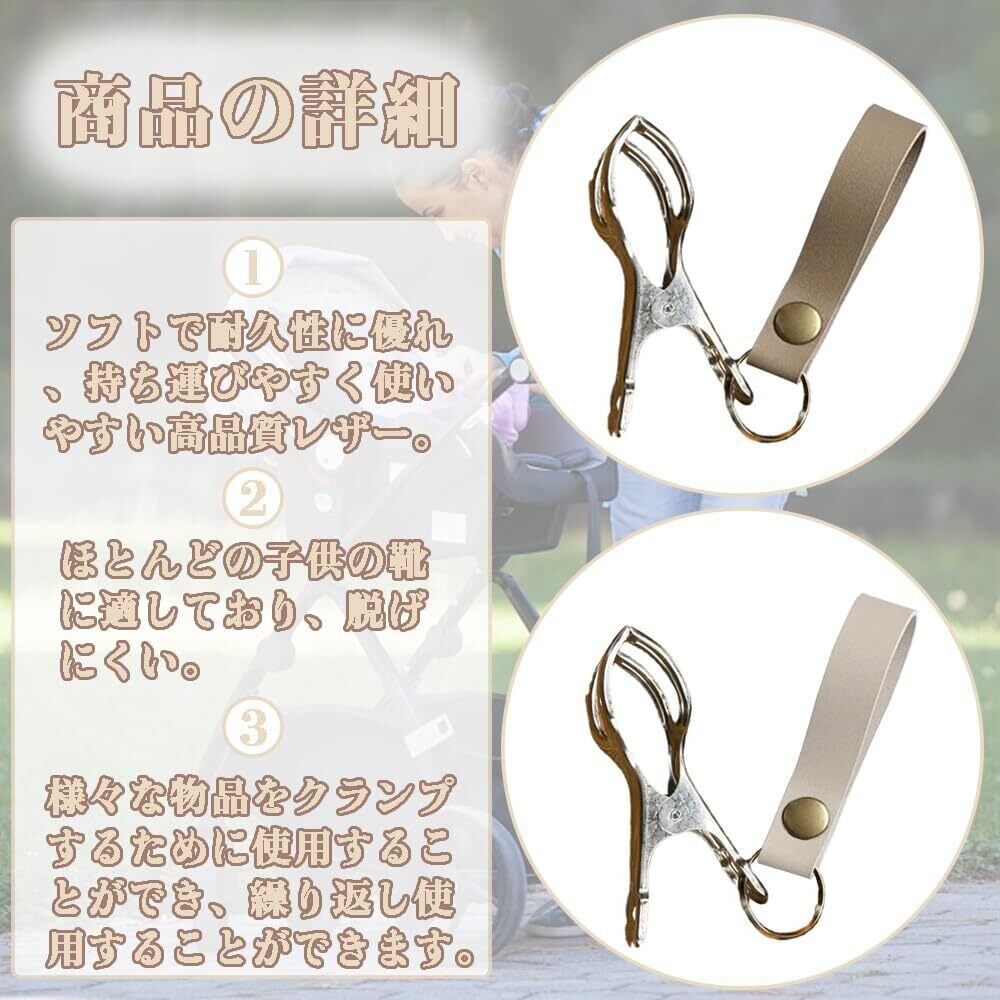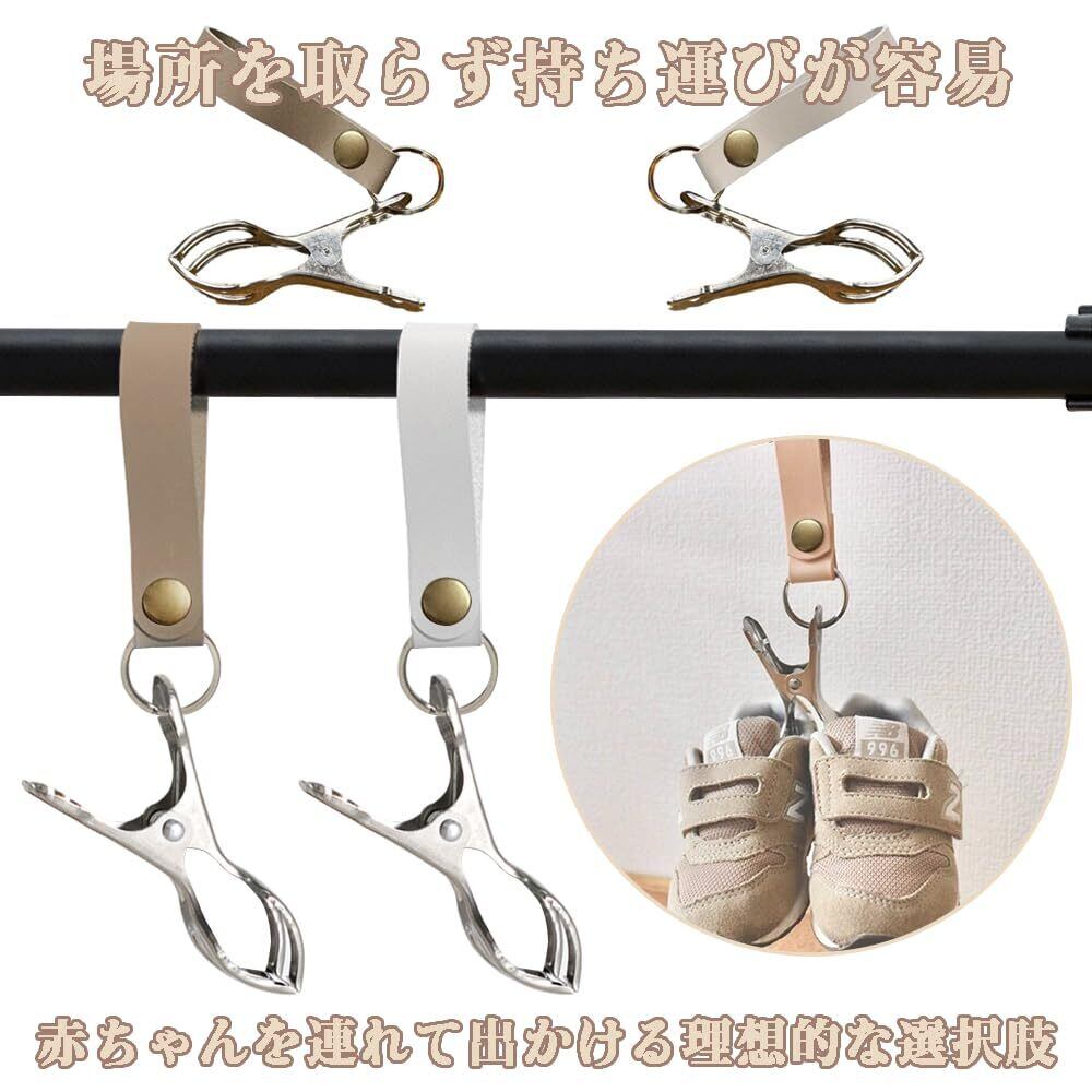 ベビーカークリップ ブランケットクリップ シューズクリップ ベビーカーアクセサリー 簡単取り付け ベビーカーに掛けられる 2個入り アーモンド+ホワイト