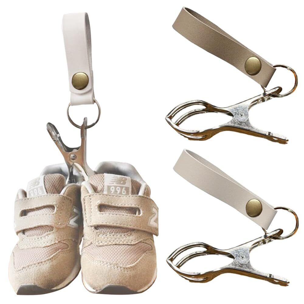 【新春セール】ベビーカークリップ ブランケットクリップ シューズクリップ ベビーカーアクセサリー 簡単取り付け ベビーカーに掛けられる 2個入り アーモンド+ホワイト