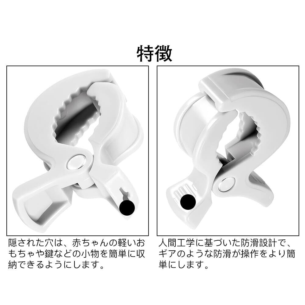 多用途:ベビーカーやおもちゃ、おしゃぶりの落下防止に最適、強力なクランプ力で安心固定。
